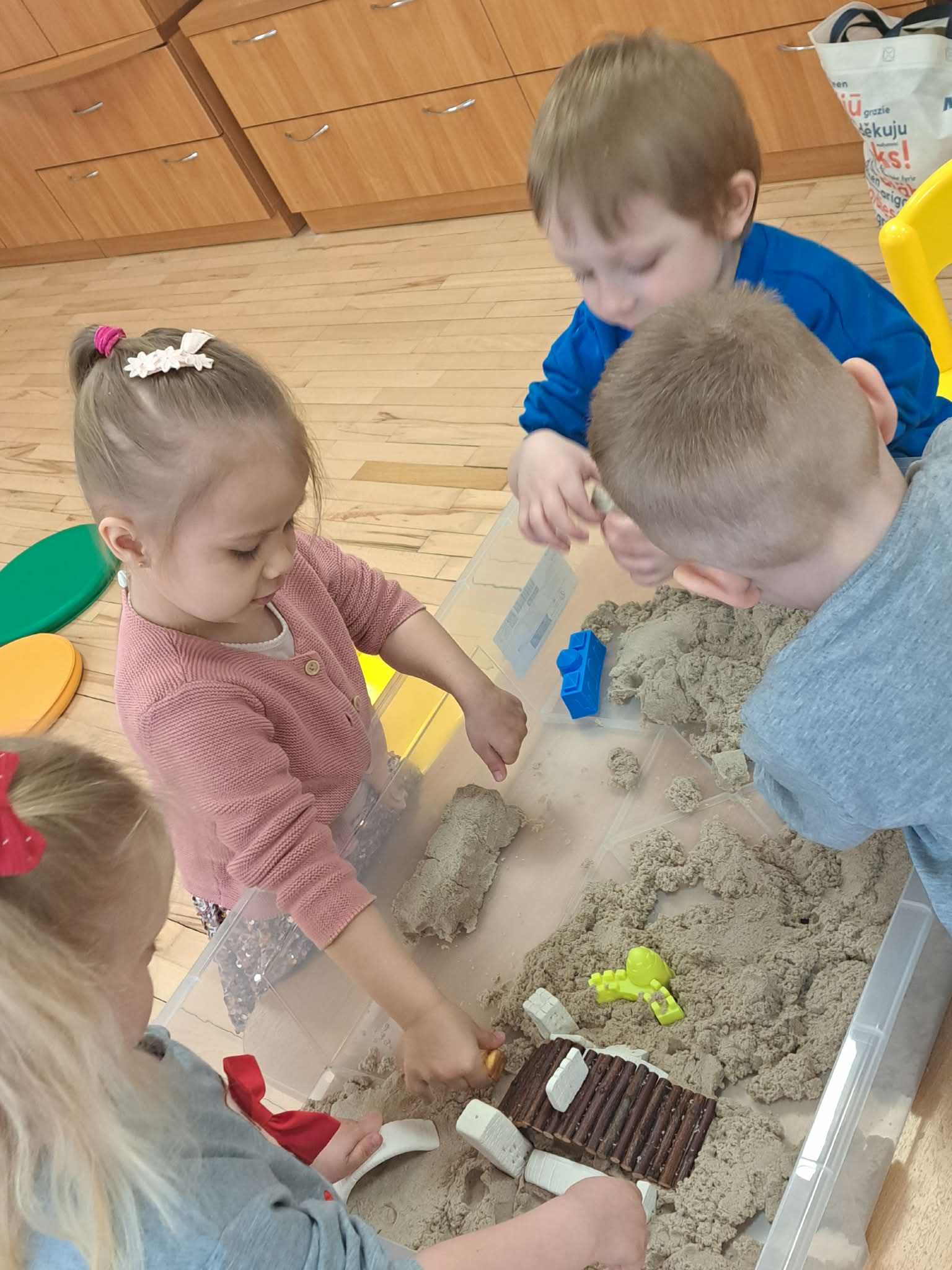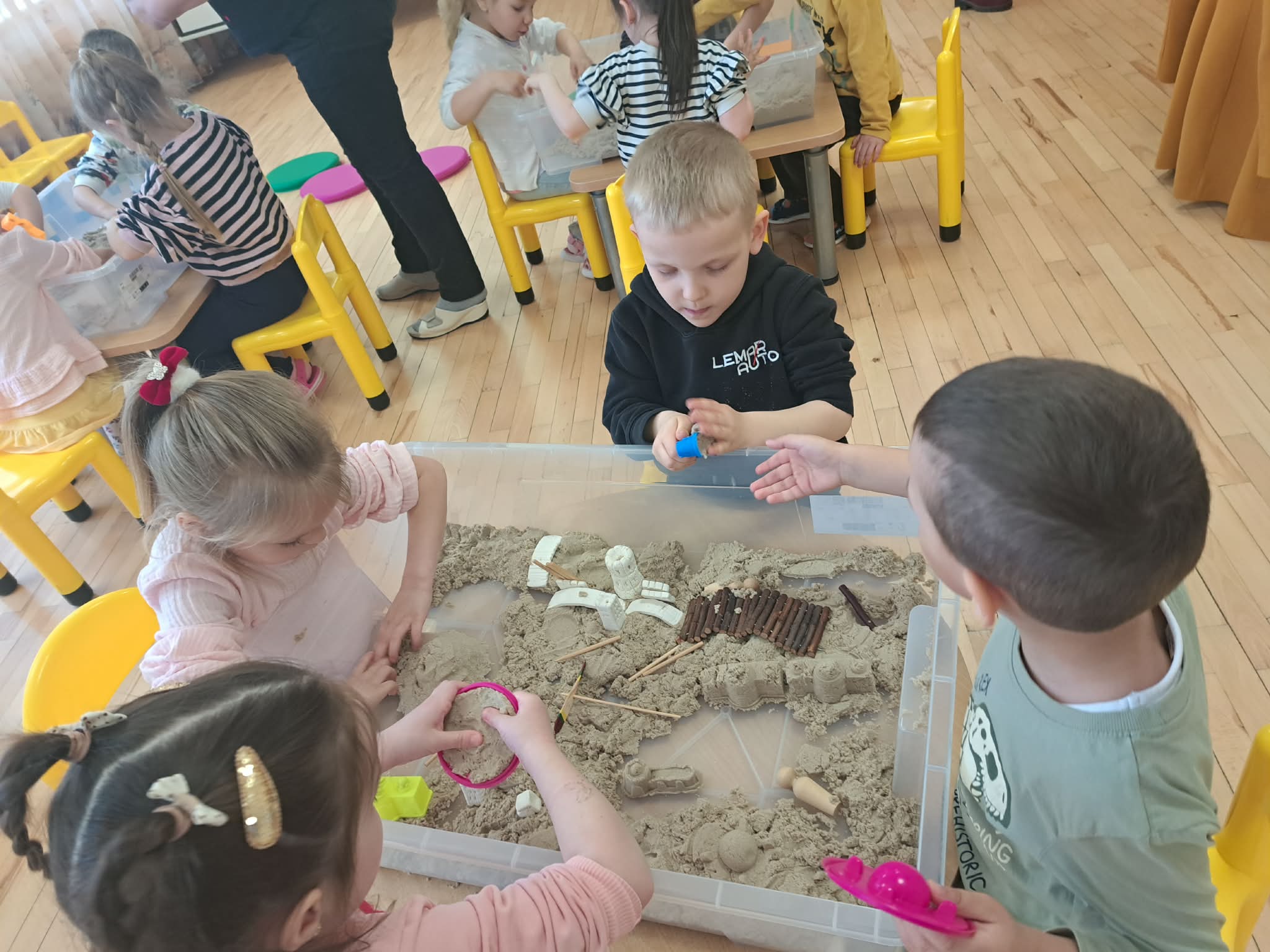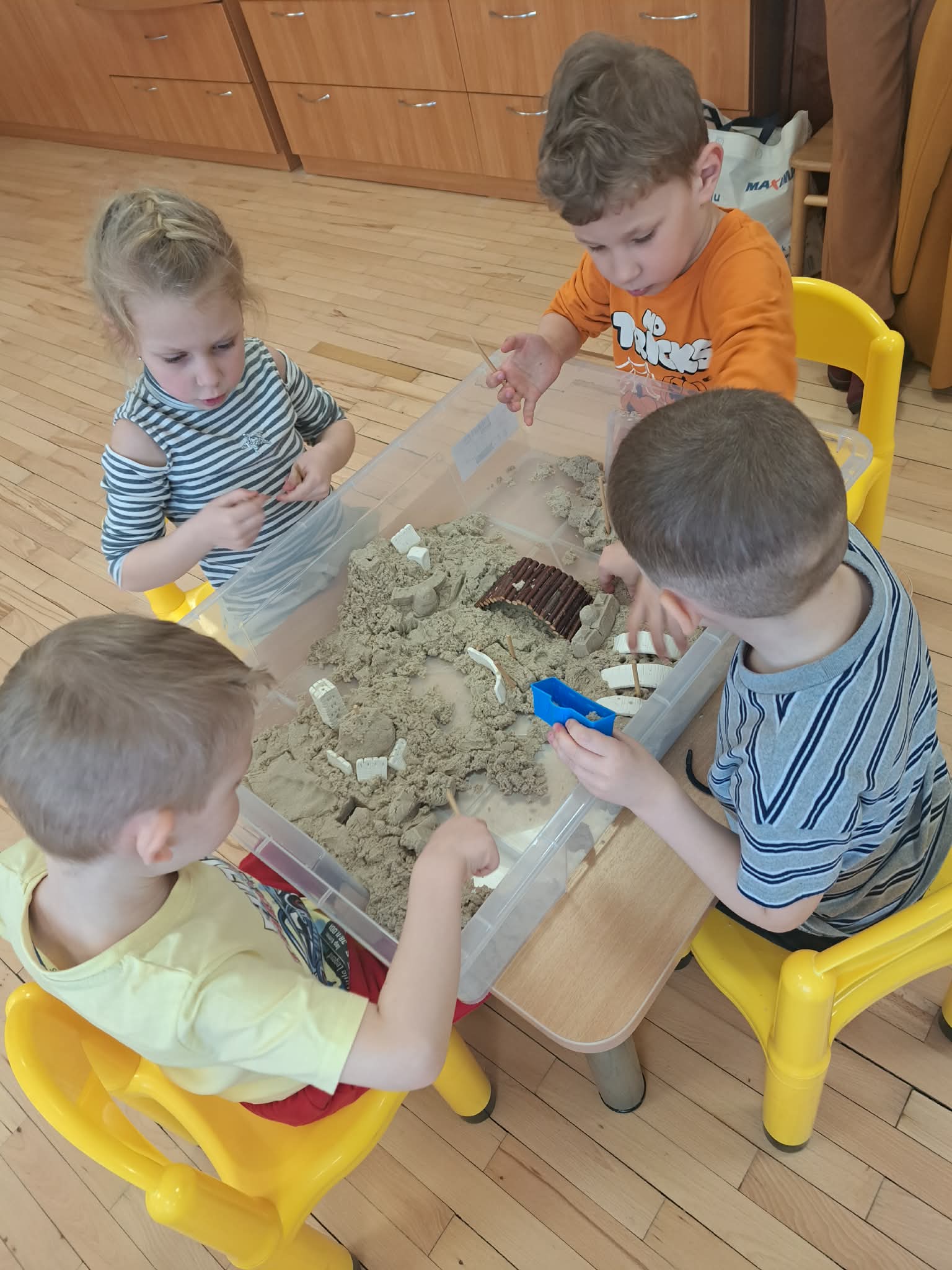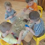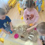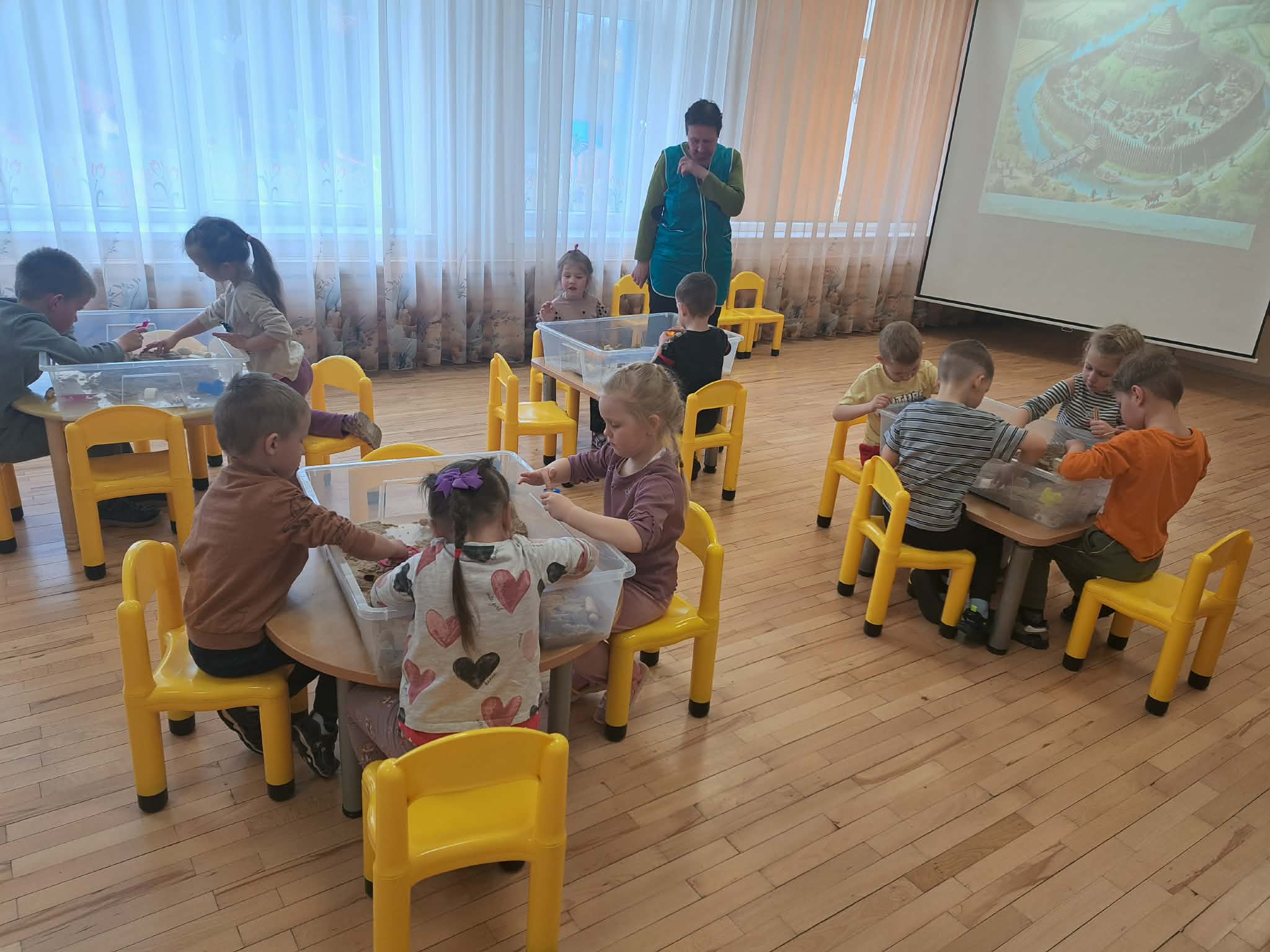Pasiskirstę komandomis, mažieji entuziastingai kūrė savo piliakalnius ir statė pilis – darbavosi susikaupę, kūrybingai ir su didžiuliu džiaugsmu.