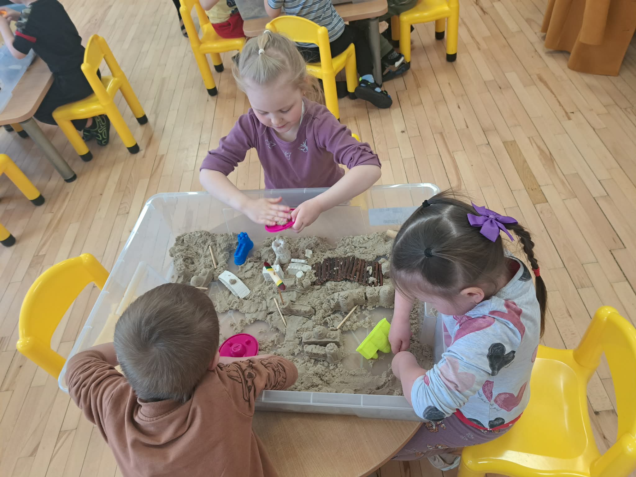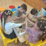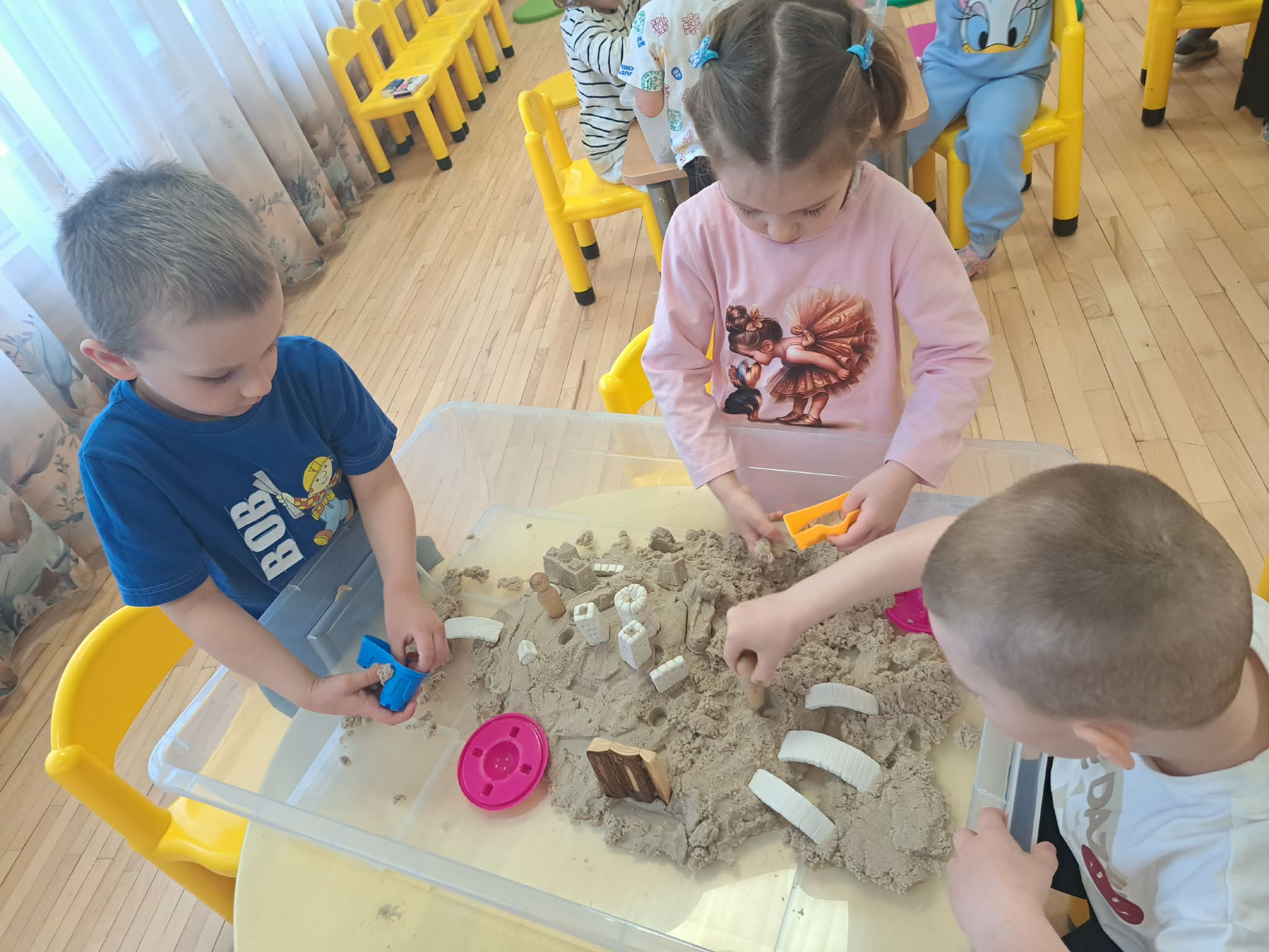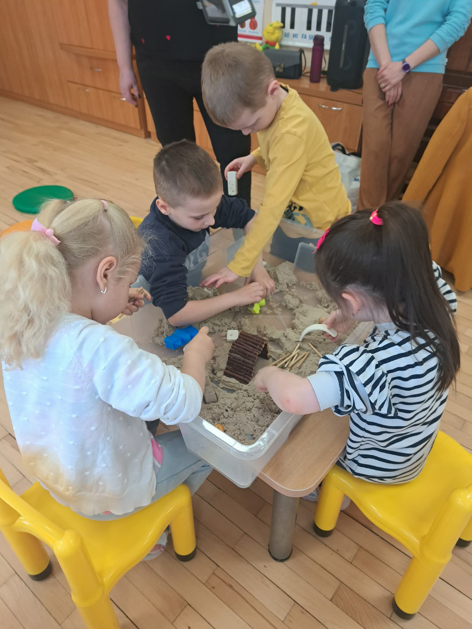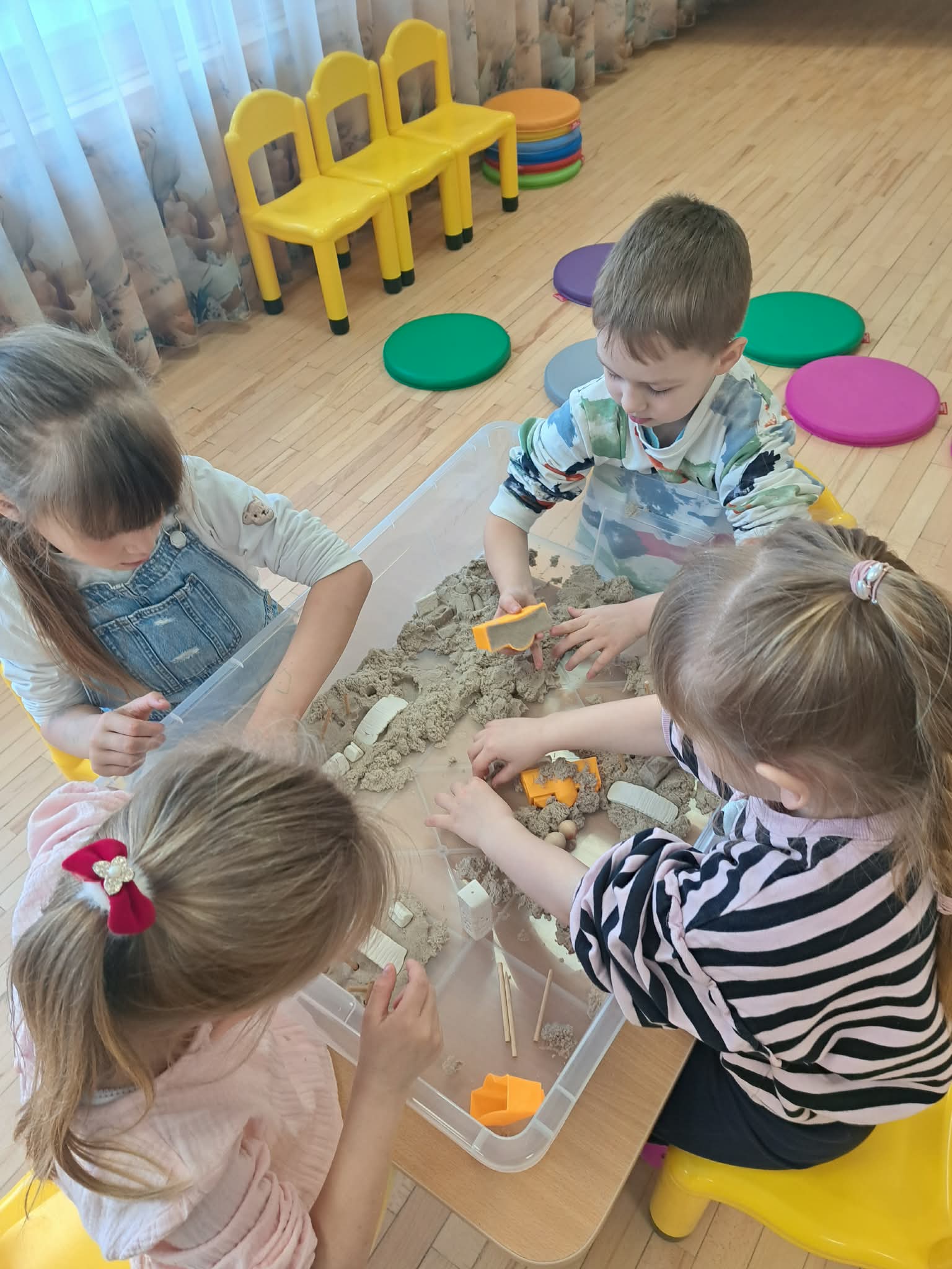 Pasiskirstę komandomis, mažieji entuziastingai kūrė savo piliakalnius ir statė pilis – darbavosi susikaupę, kūrybingai ir su didžiuliu džiaugsmu.