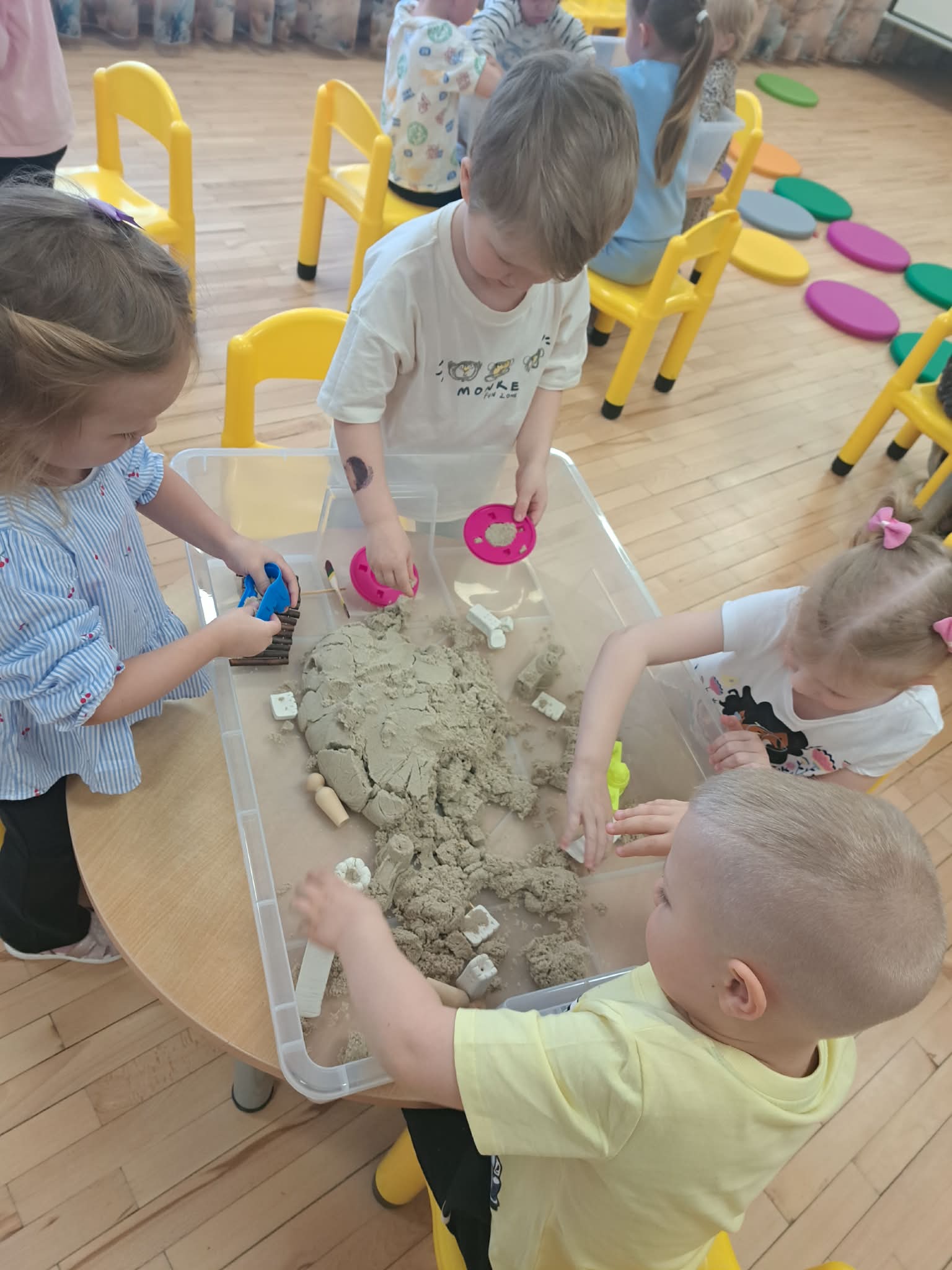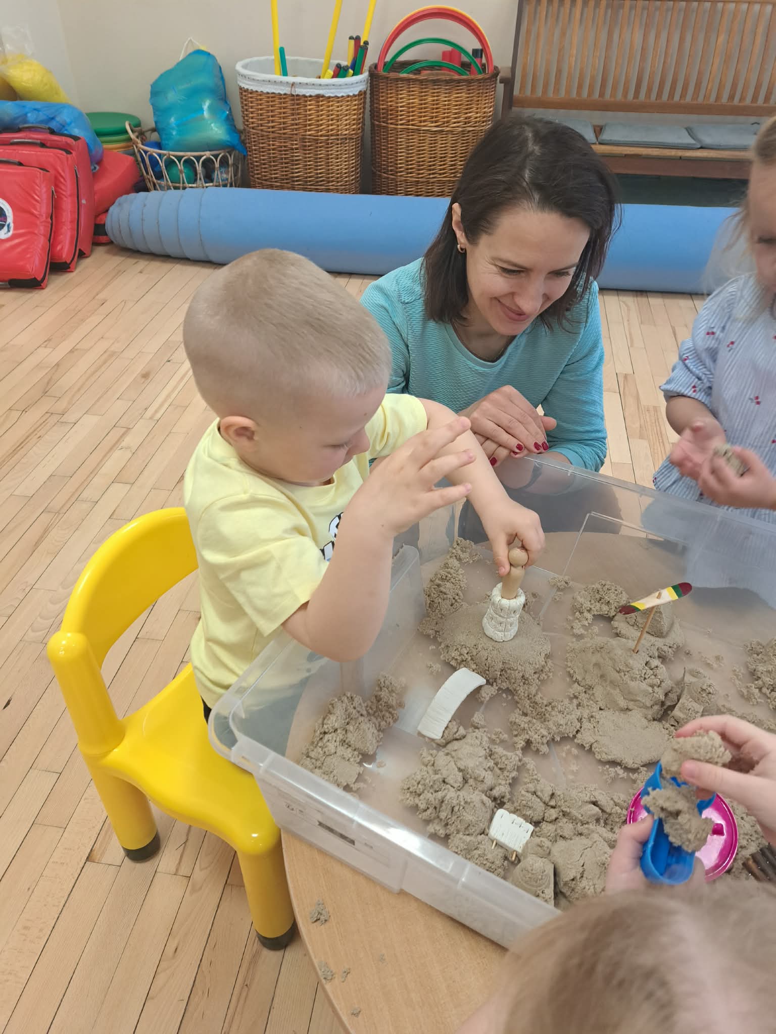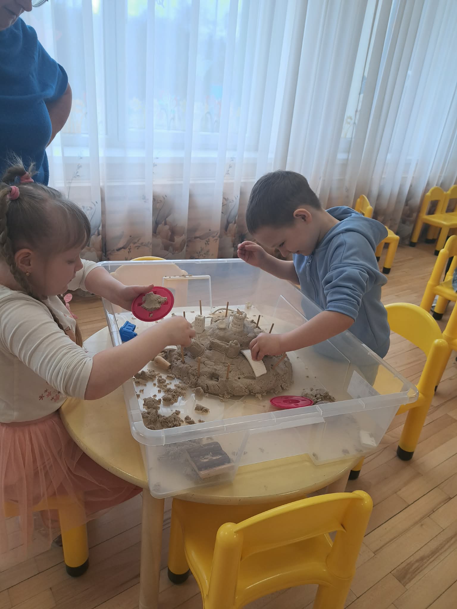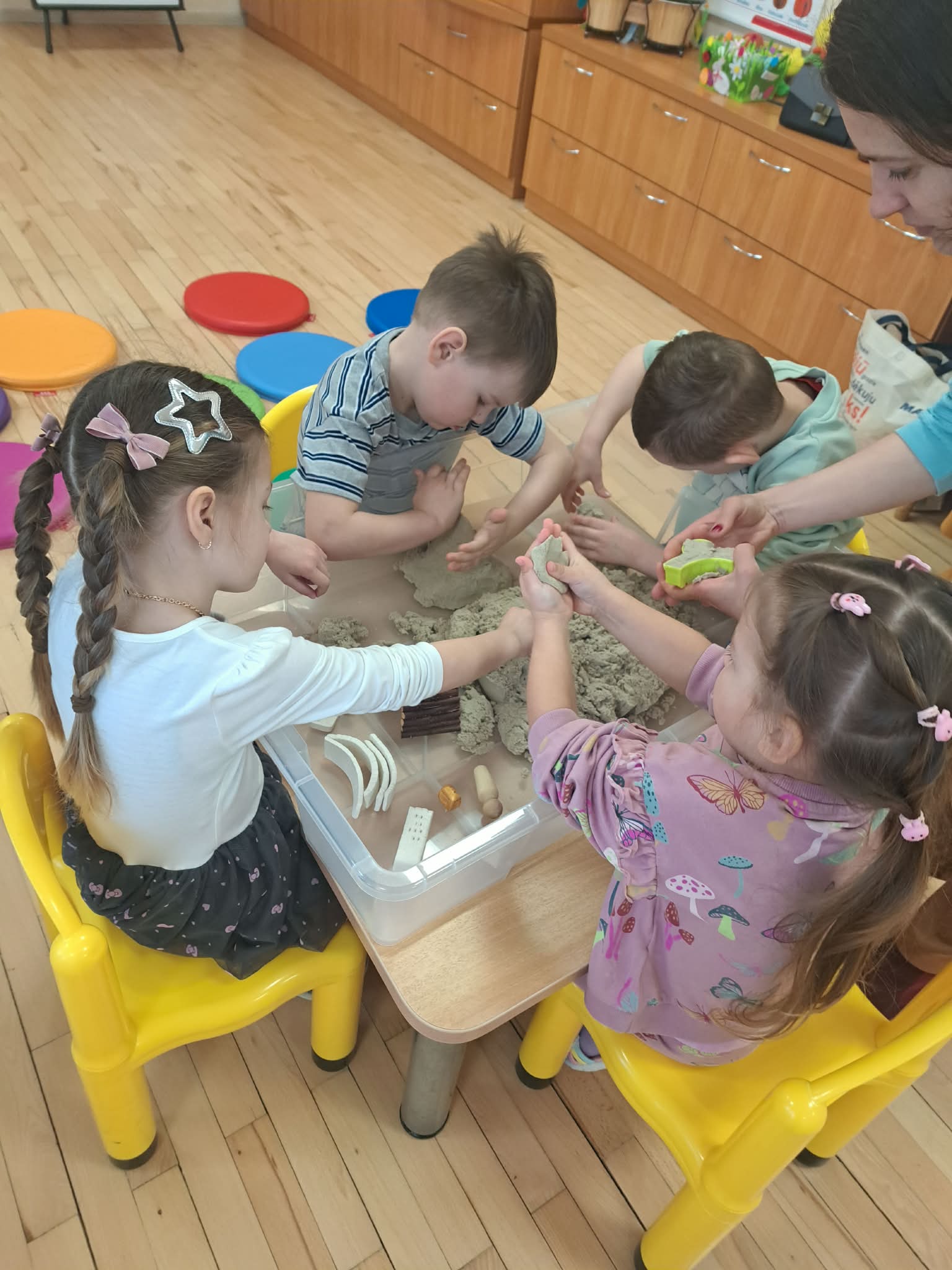 Pasiskirstę komandomis, mažieji entuziastingai kūrė savo piliakalnius ir statė pilis – darbavosi susikaupę, kūrybingai ir su didžiuliu džiaugsmu.