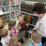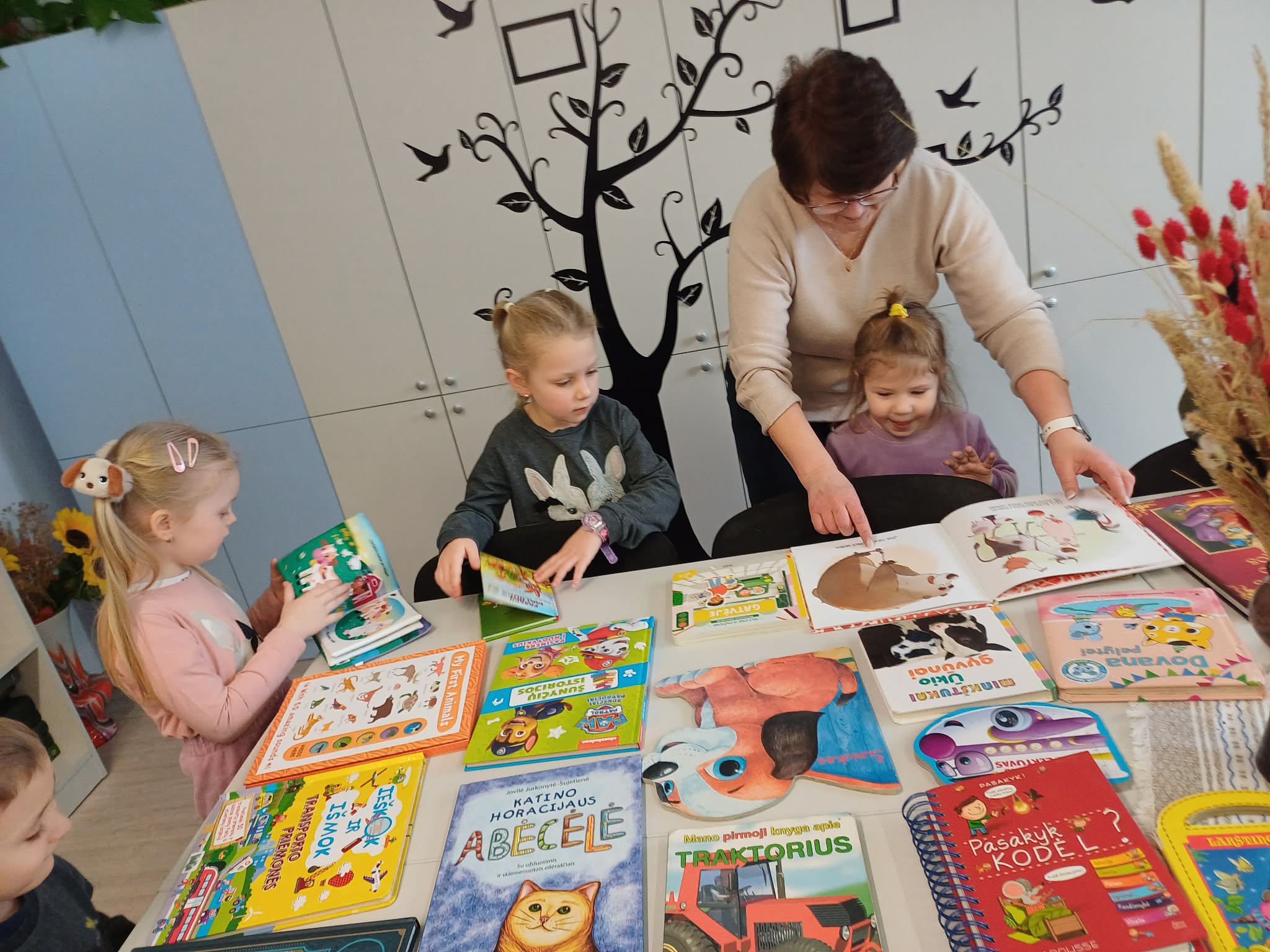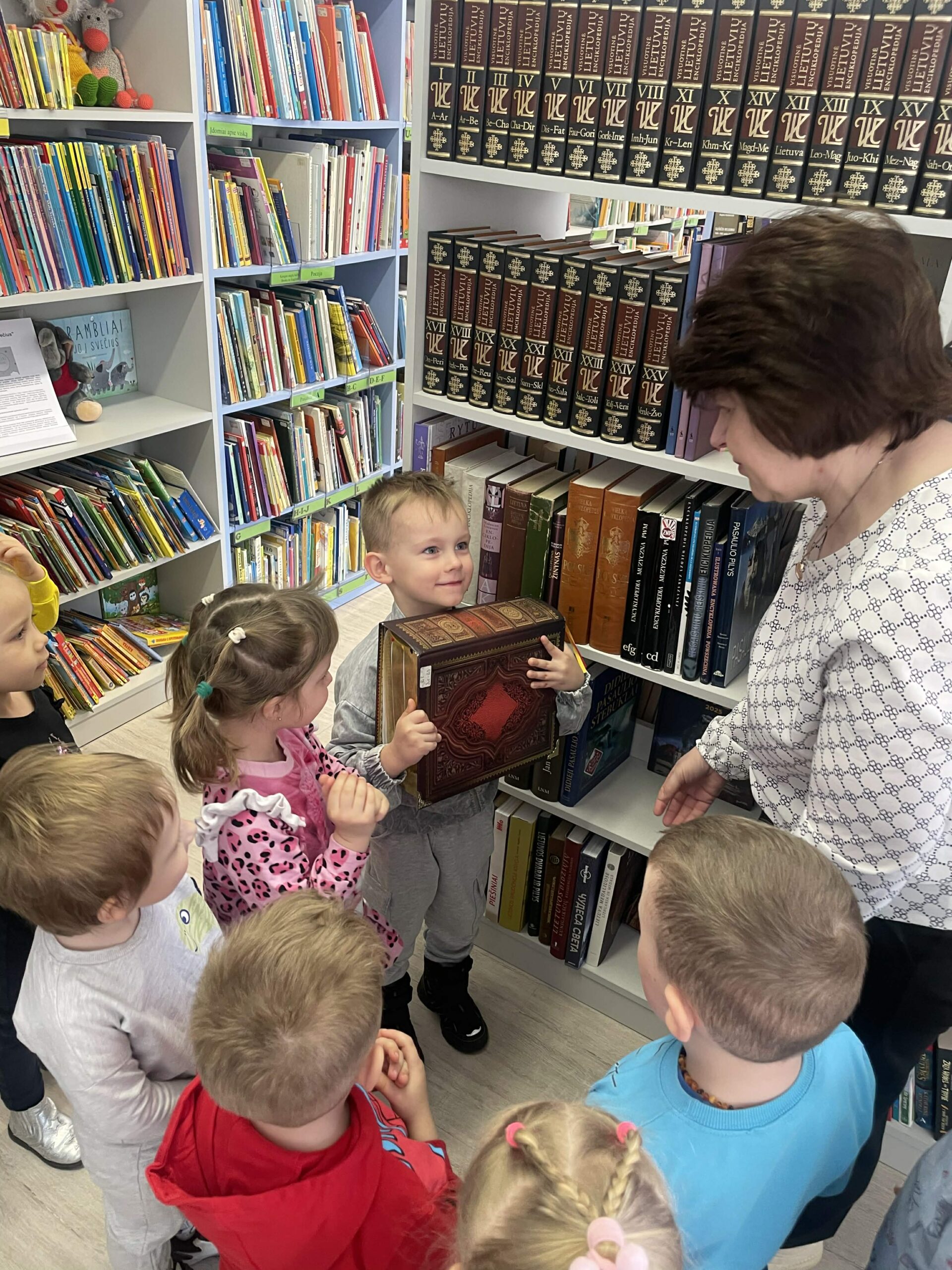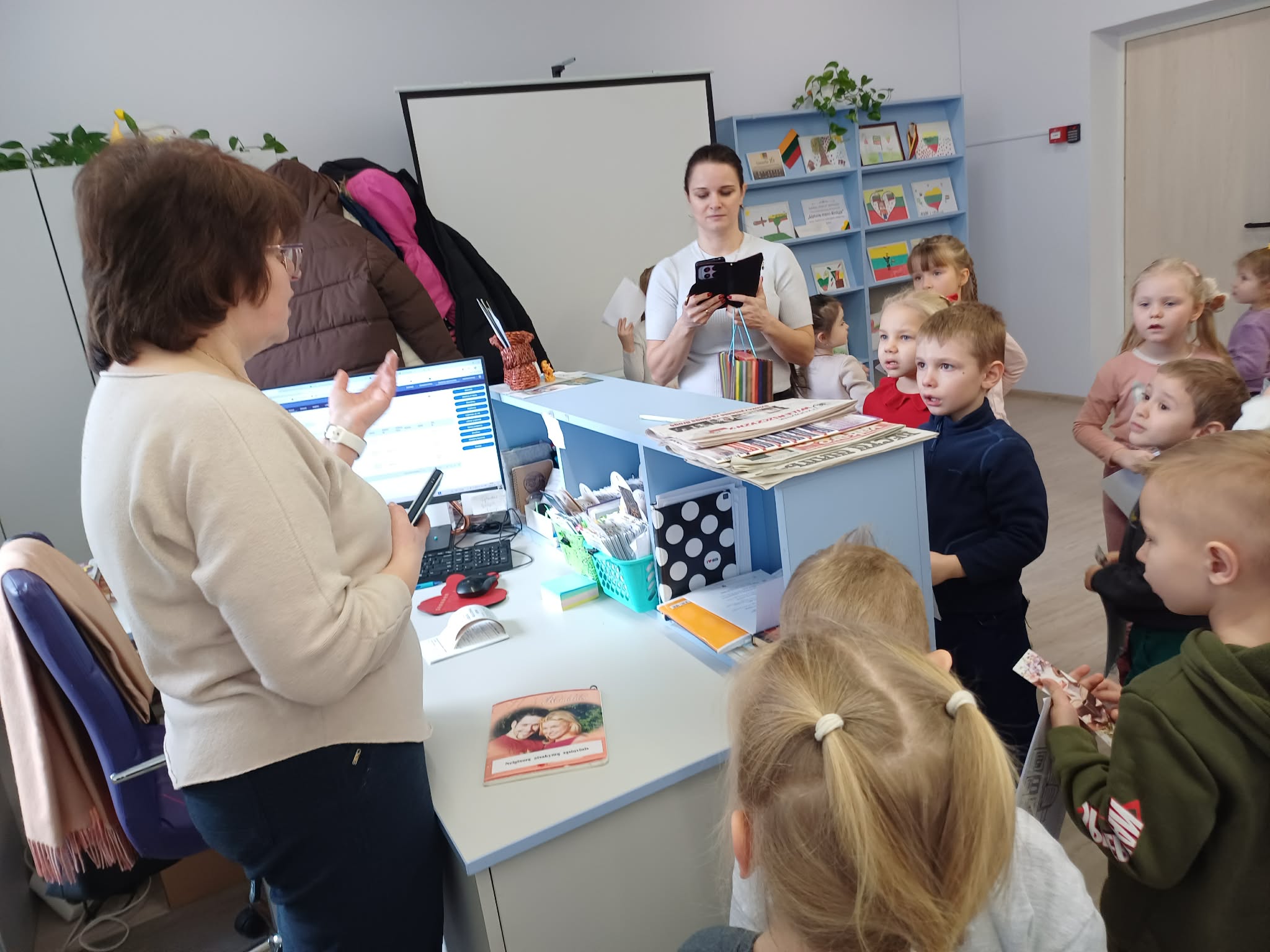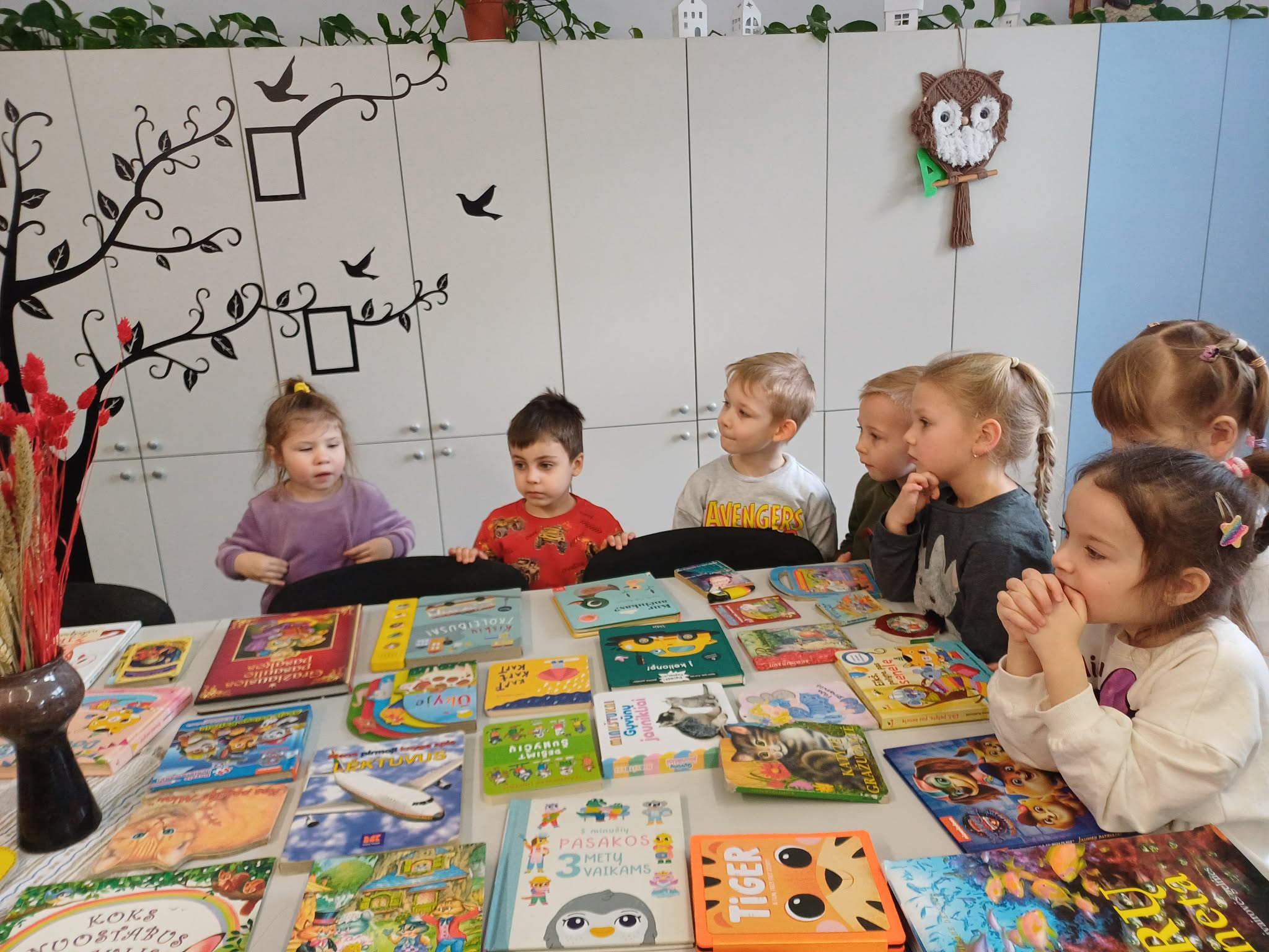 Bibliotekos darbuotoja šiltai priėmė mažuosius lankytojus ir vedė trumpas, įdomias edukacijas. Vaikai vartė įvairias knygeles, kūrė aplikacijas, dalyvavo smagiuose žaidimuose.