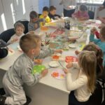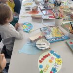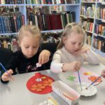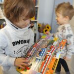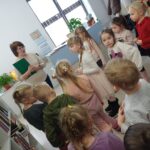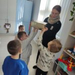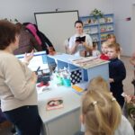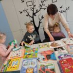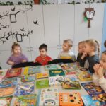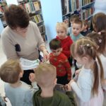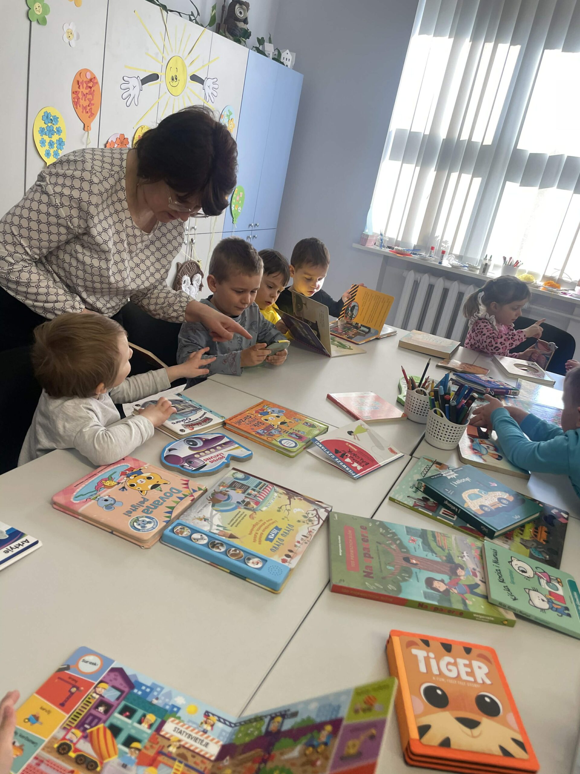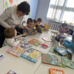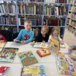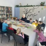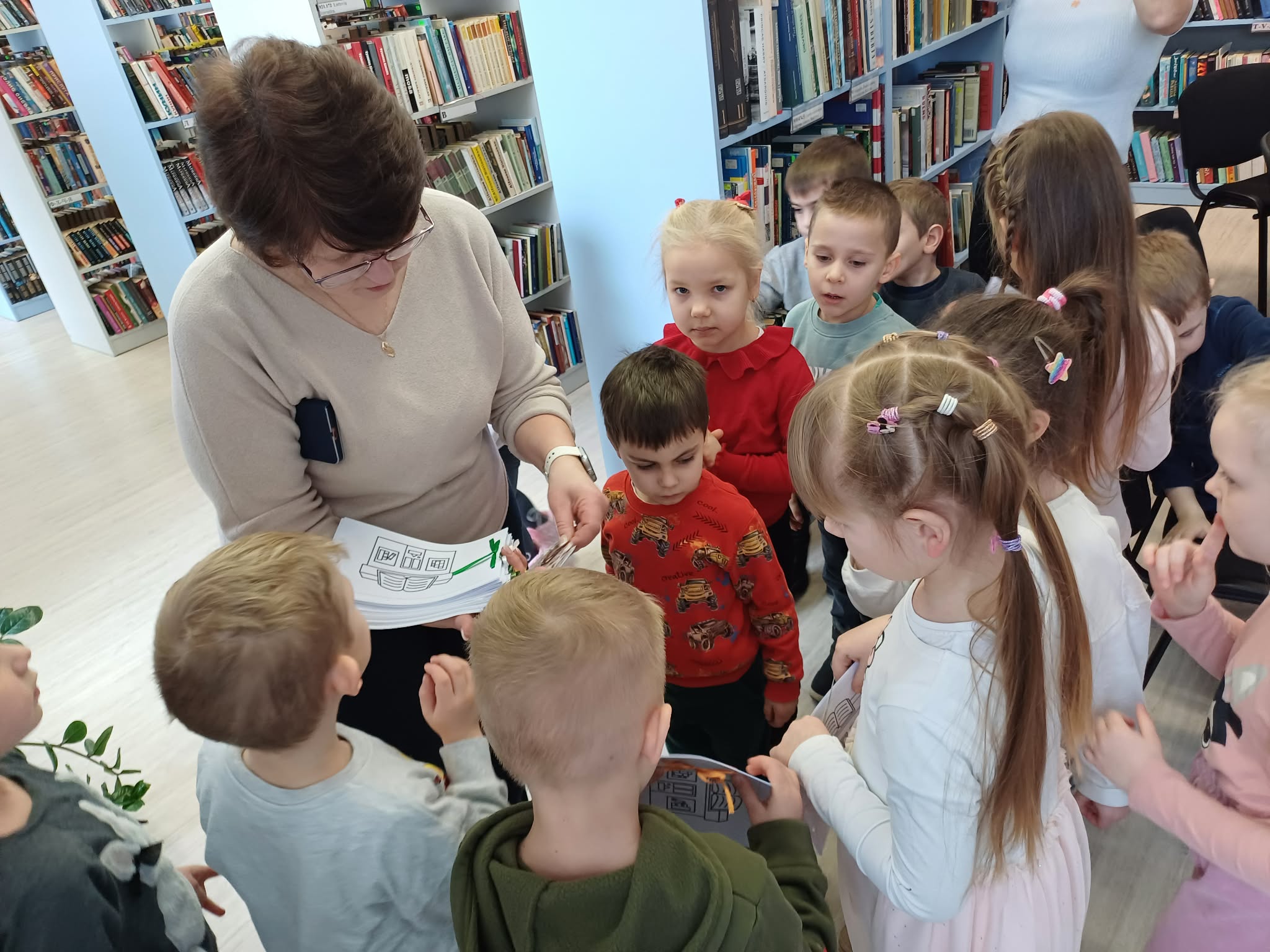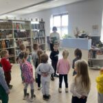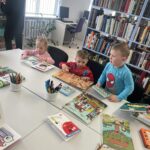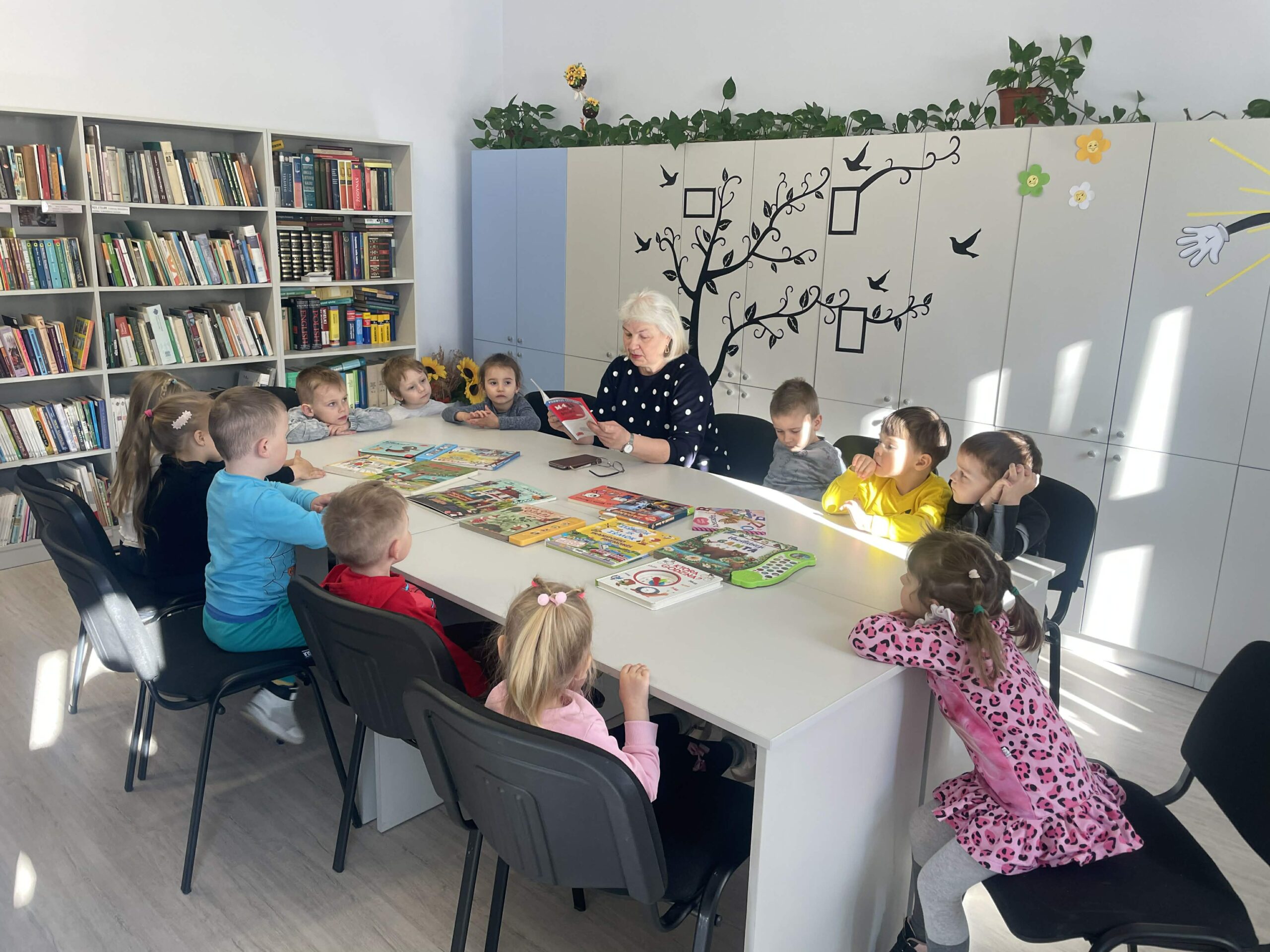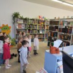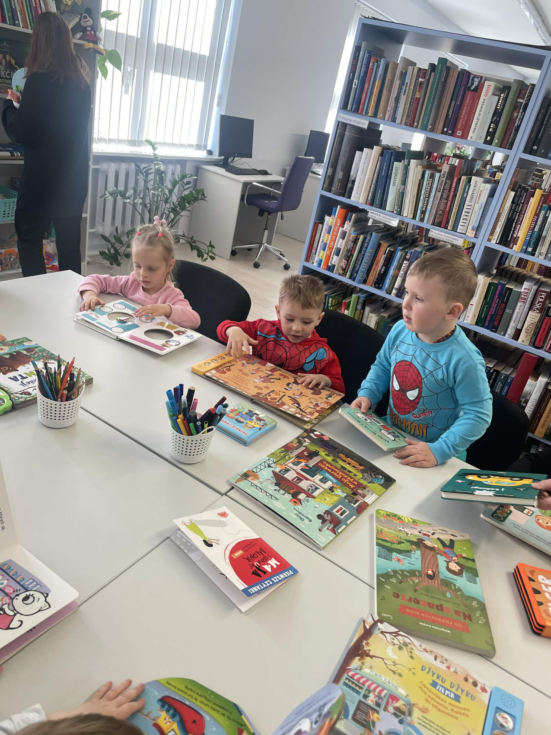 Bibliotekos darbuotoja šiltai priėmė mažuosius lankytojus ir vedė trumpas, įdomias edukacijas. Vaikai vartė įvairias knygeles, kūrė aplikacijas, dalyvavo smagiuose žaidimuose.
