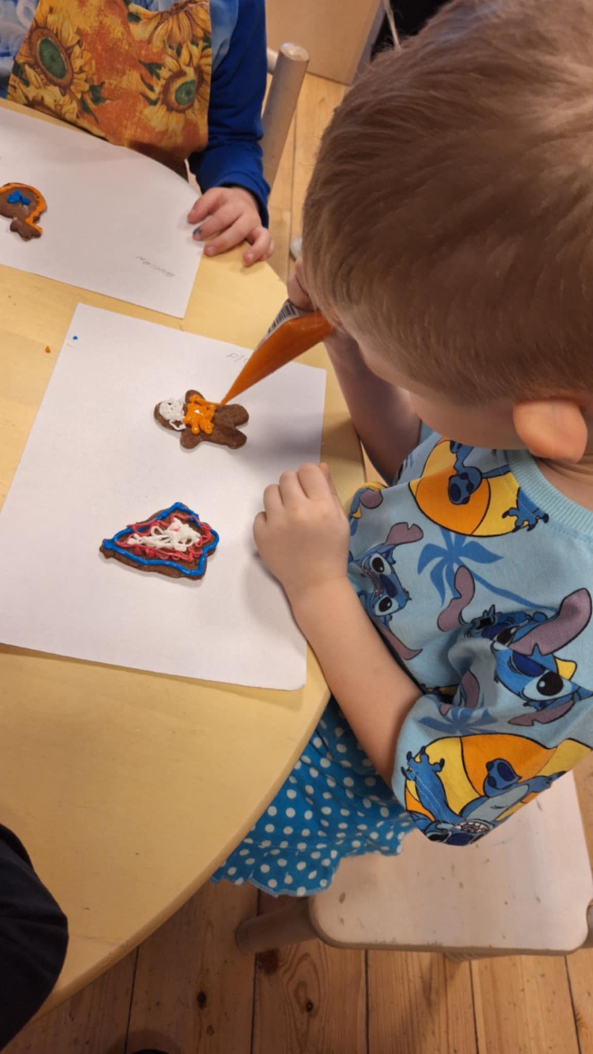 Vaikų darželyje „Ežiukų“ grupėje vyko jauki ir kūrybiška veikla – meduoliukų dekoravimas. Mažieji su dideliu susidomėjimu ir džiaugsmu kibo į darbą: spalvotu glajumi, pabarstukais ir šypsenomis puošė kvepiančius meduoliukus.