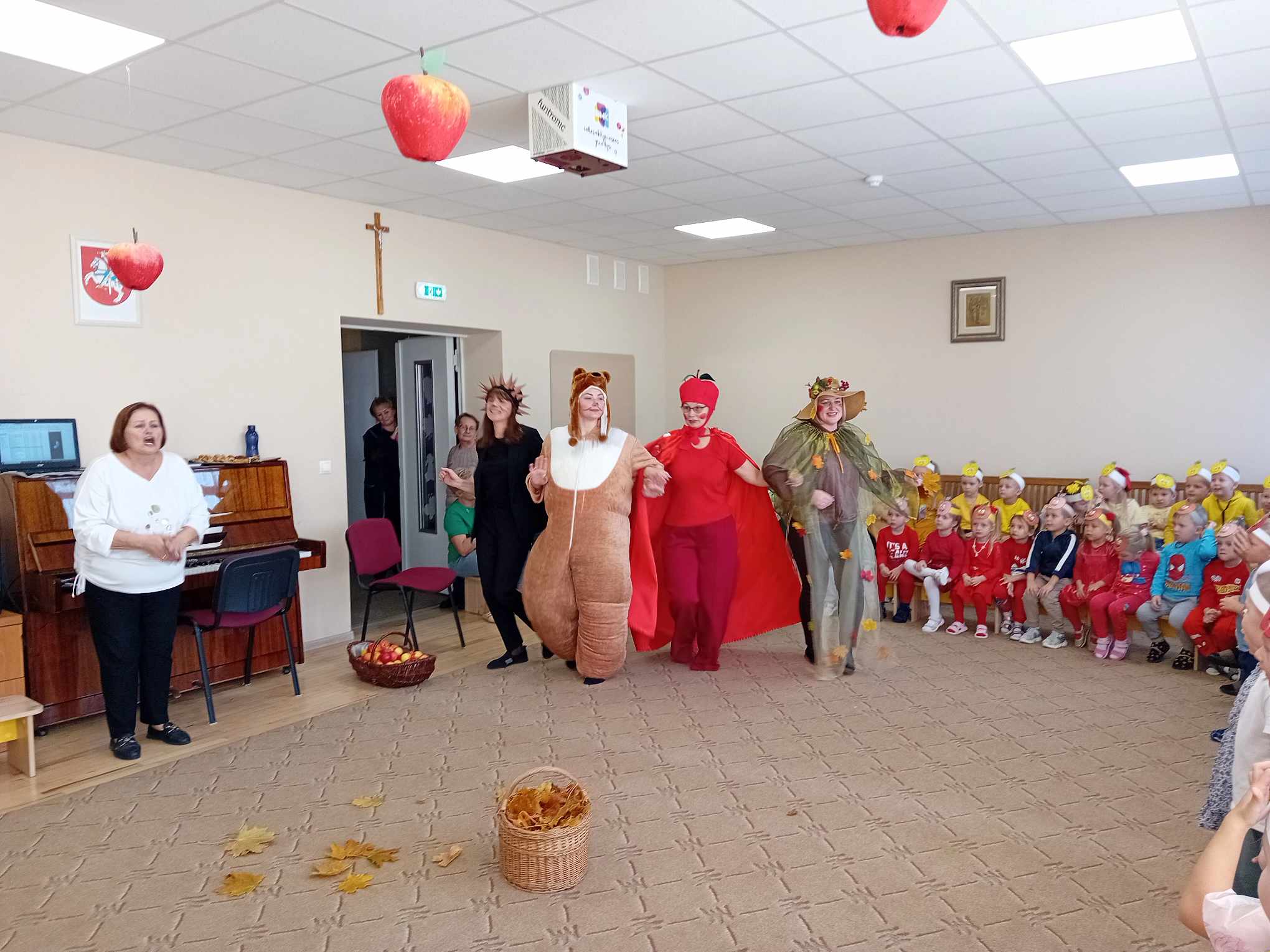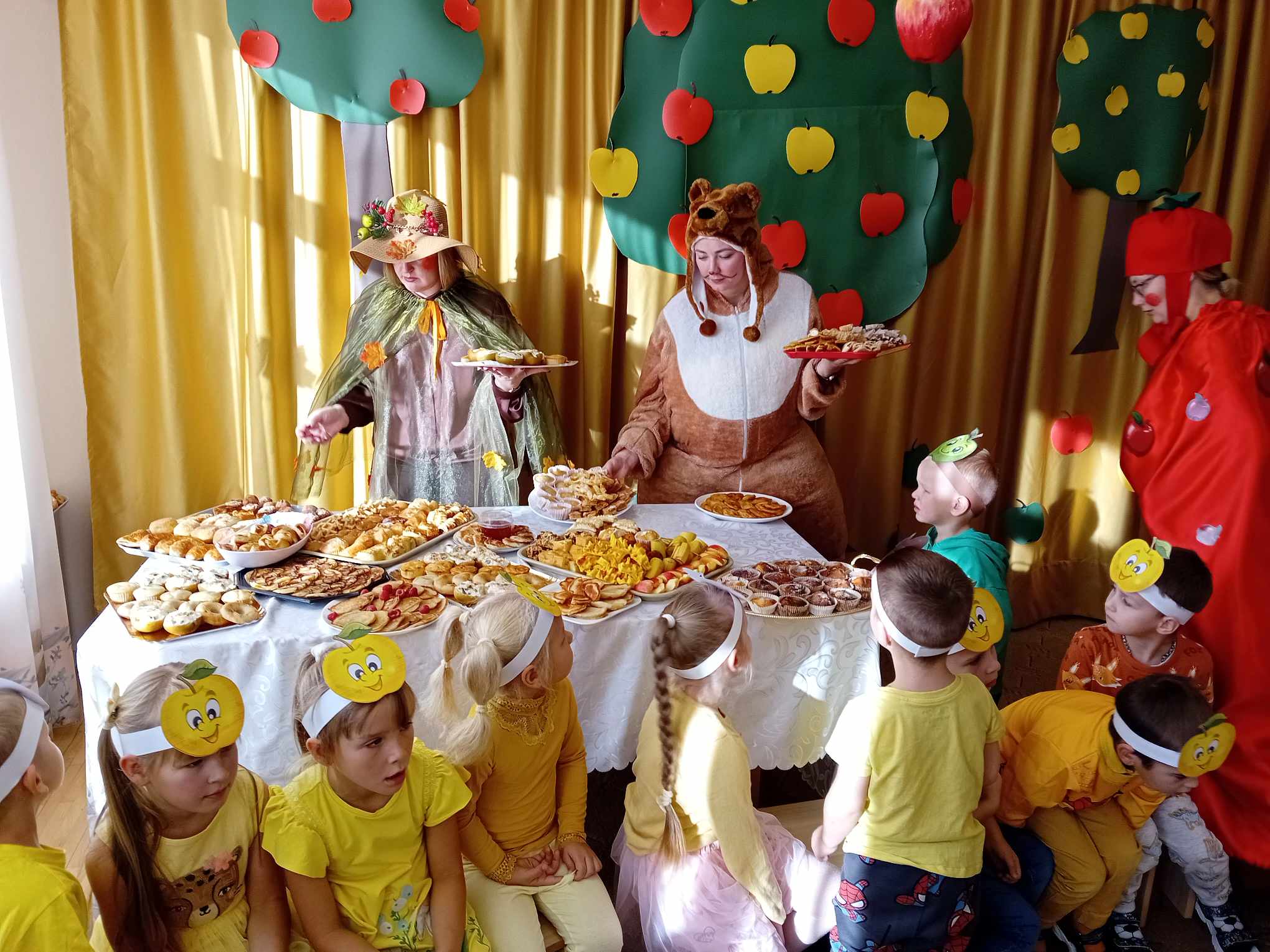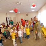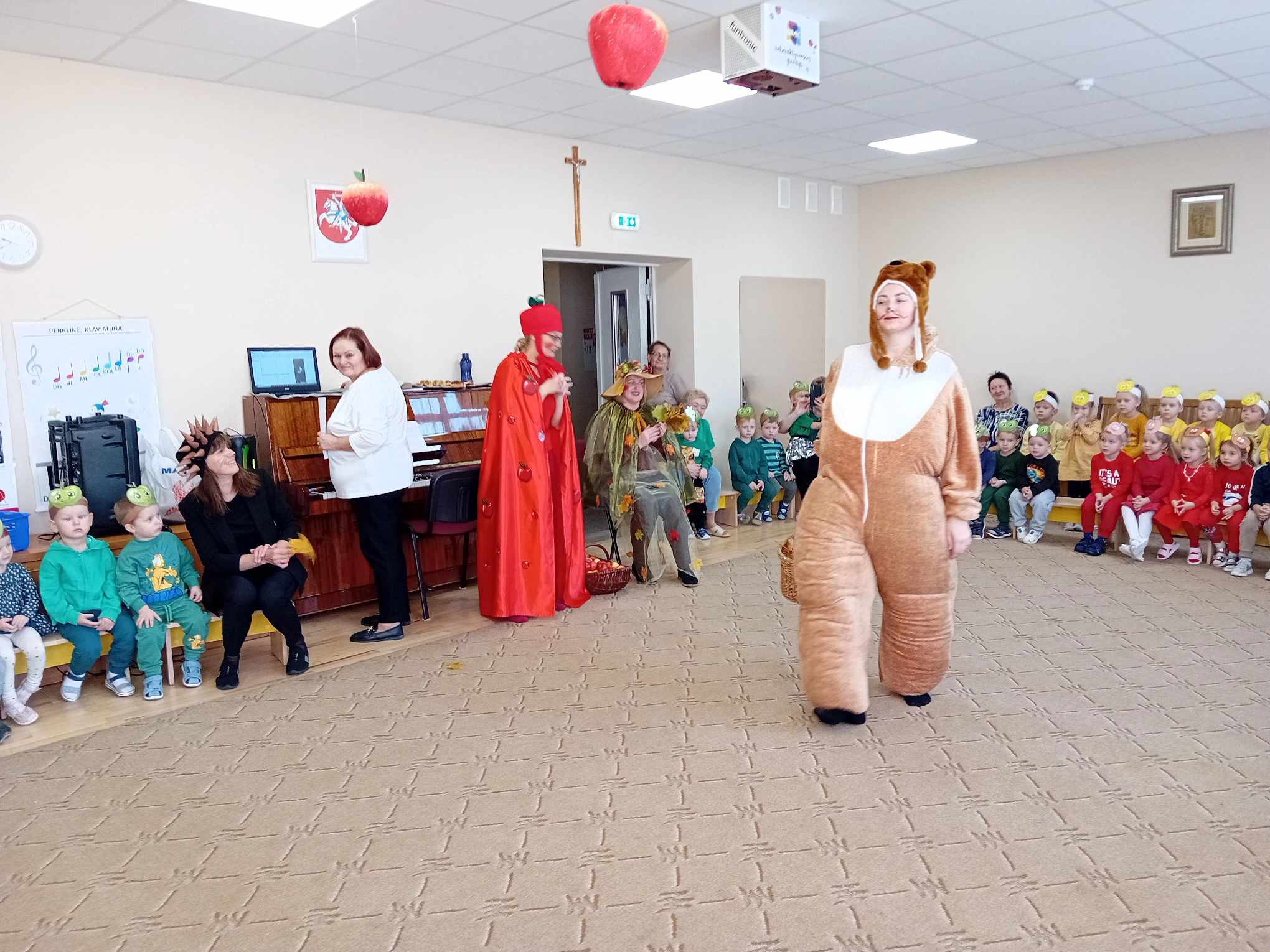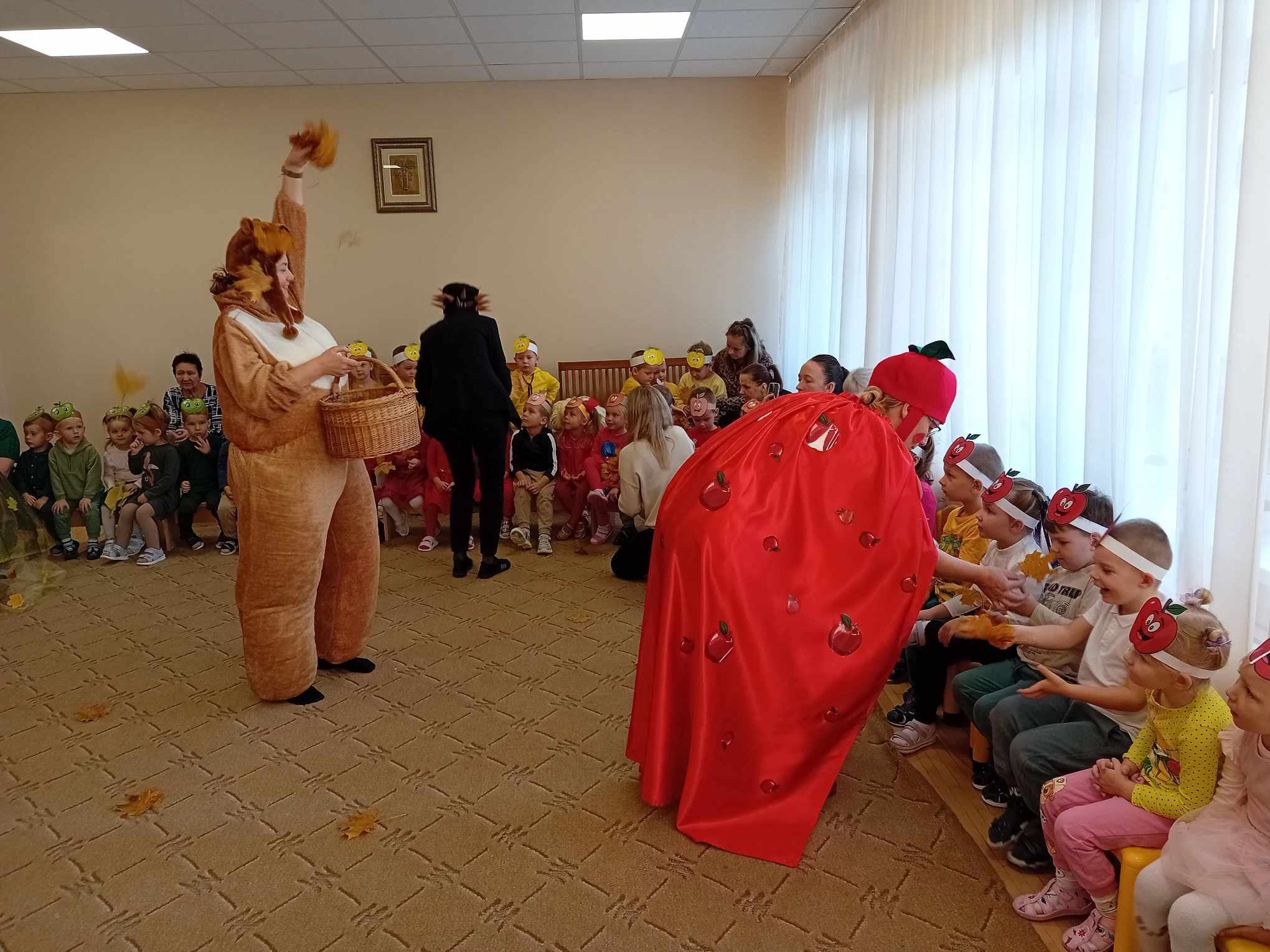 Žaidė įvairius žaidimus su obuoliais.  Jų metu pedagogai stengėsi  praturtinti vaikų žinias apie obuolį, jo populiarumą, turtingumą vitaminais, maistinėmis medžiagomis,  reikšmę žmogaus organizmui, skatino sveikai maitintis valgant kuo daugiau vaisių.