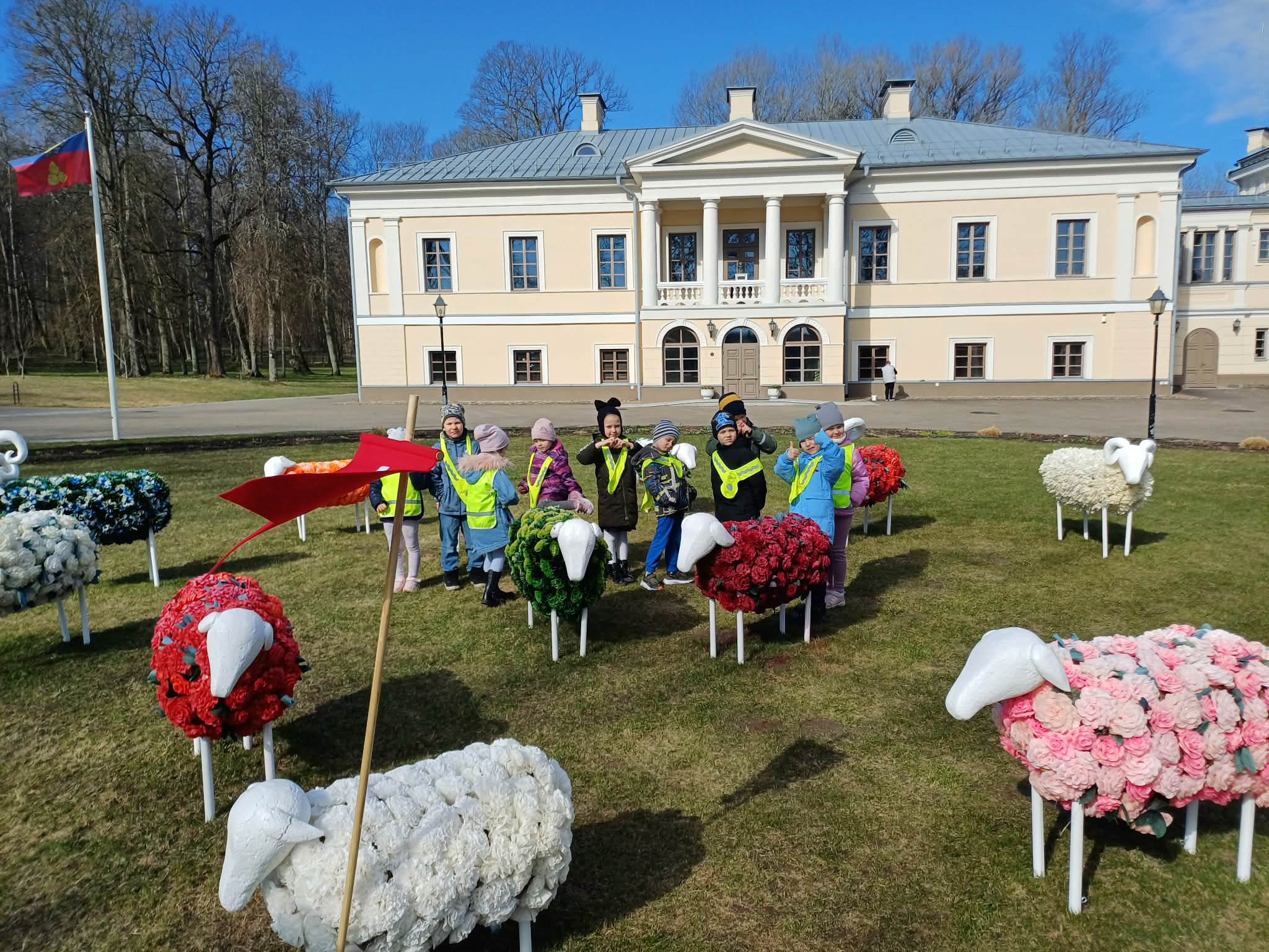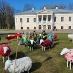 Jie aplankė Balinskio dvaro rūmų parke eksponuojamas velykines aveles.