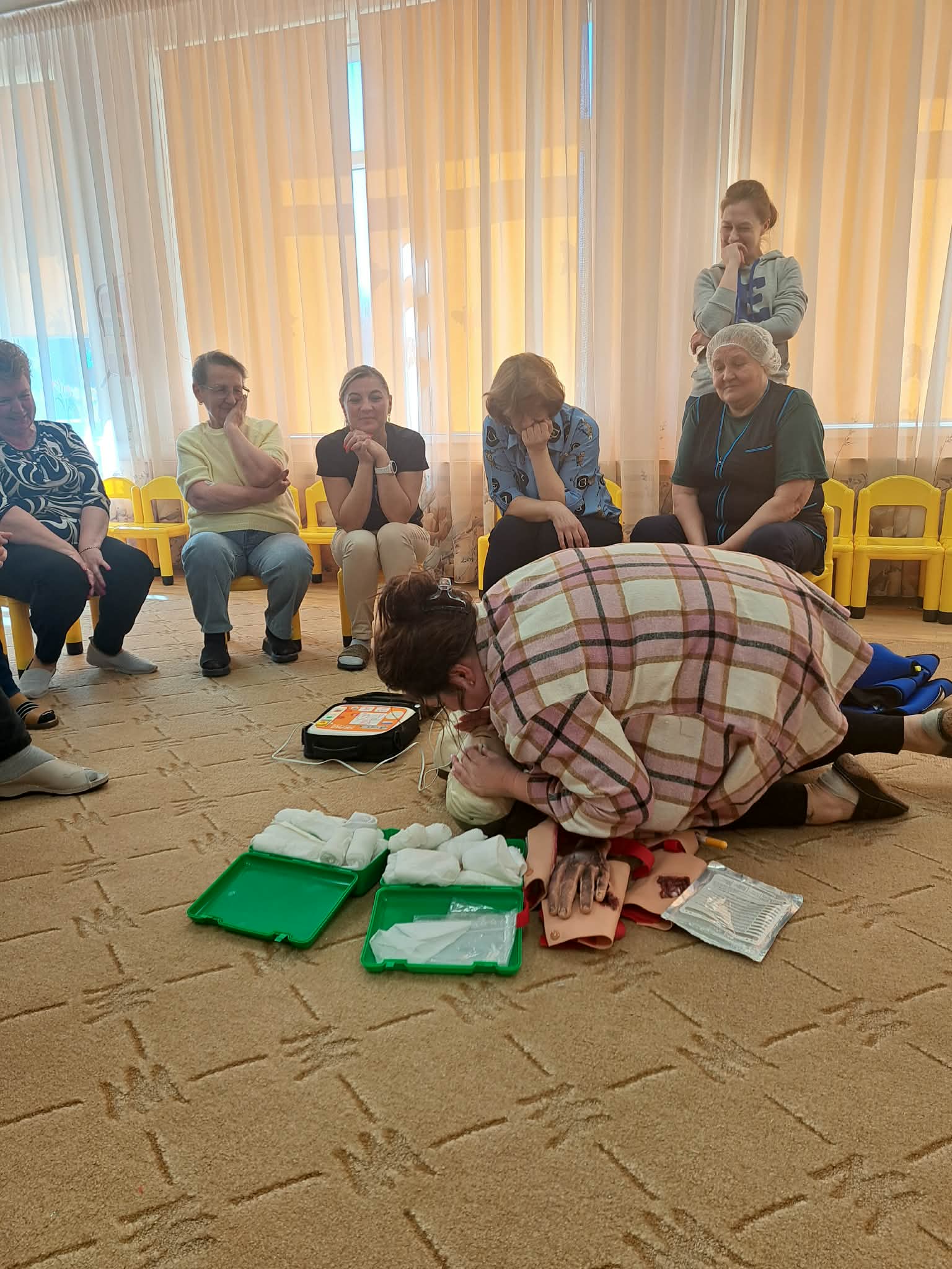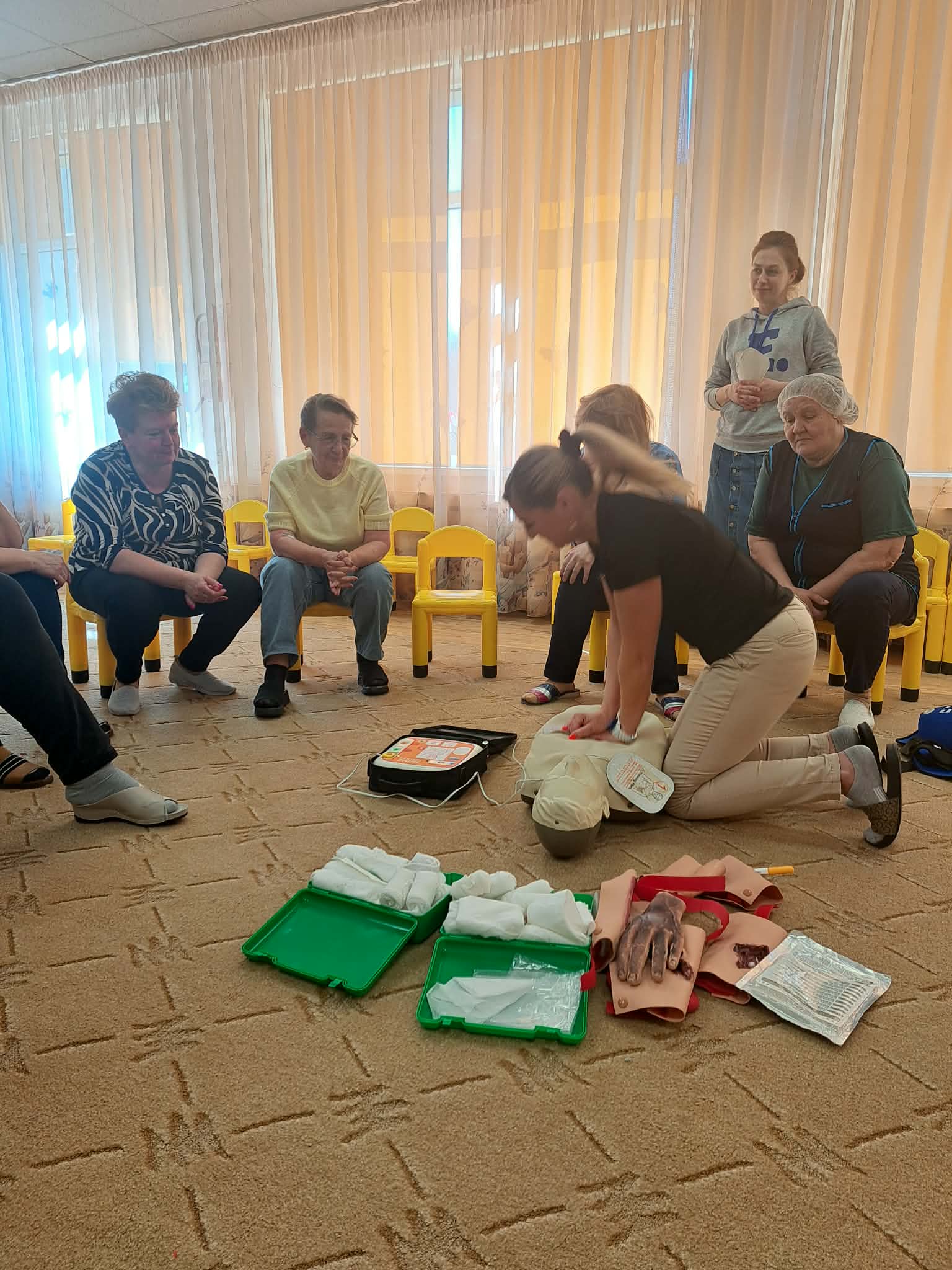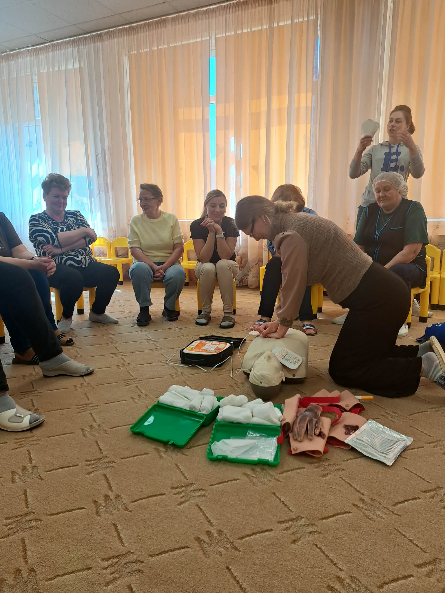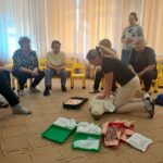 Mokymų metu darbuotojai ne tik atnaujino teorines žinias, bet ir aktyviai išbandė praktinius įgūdžius. Prisiminė pagrindinius gyvybės gelbėjimo principus.