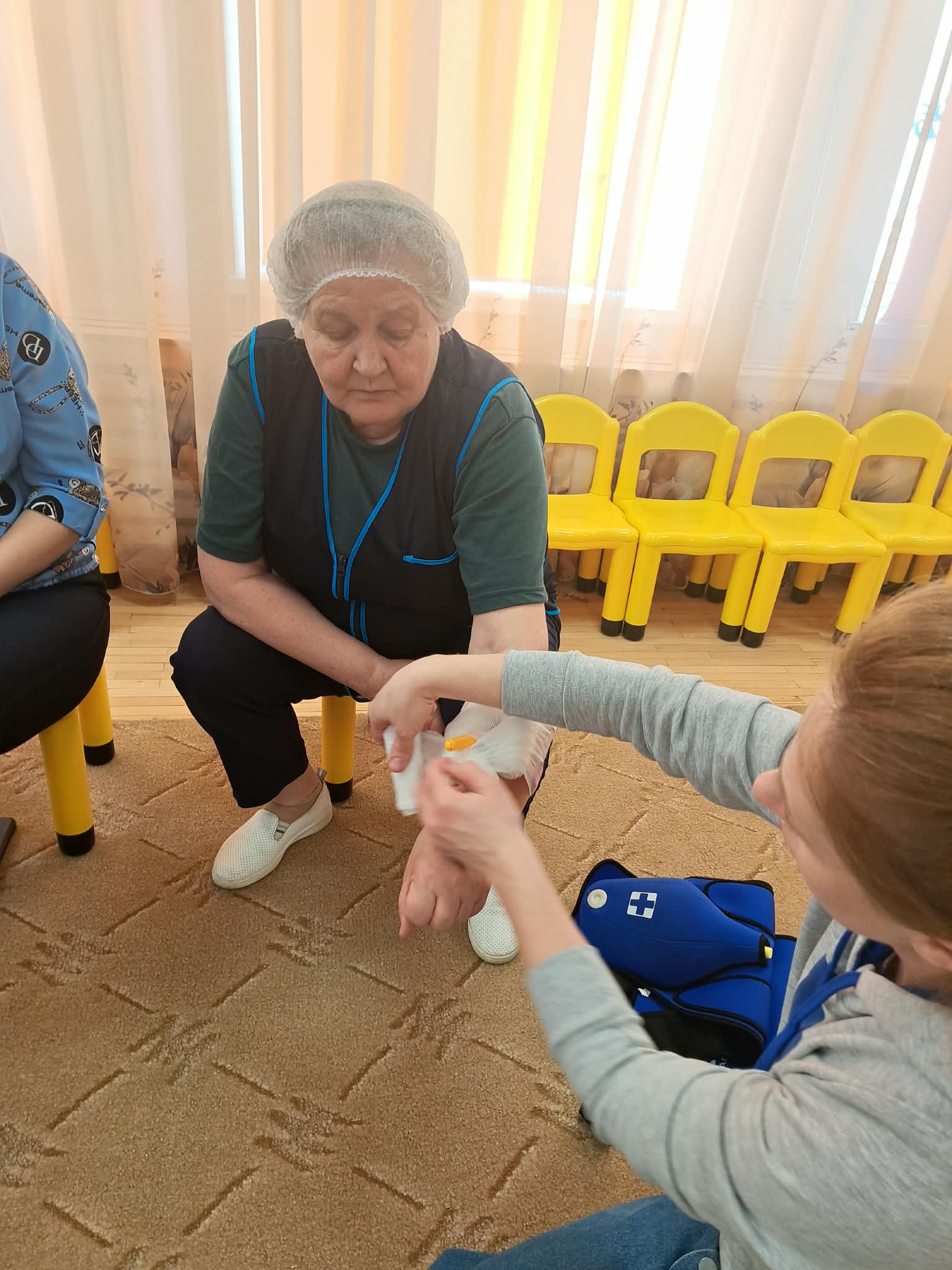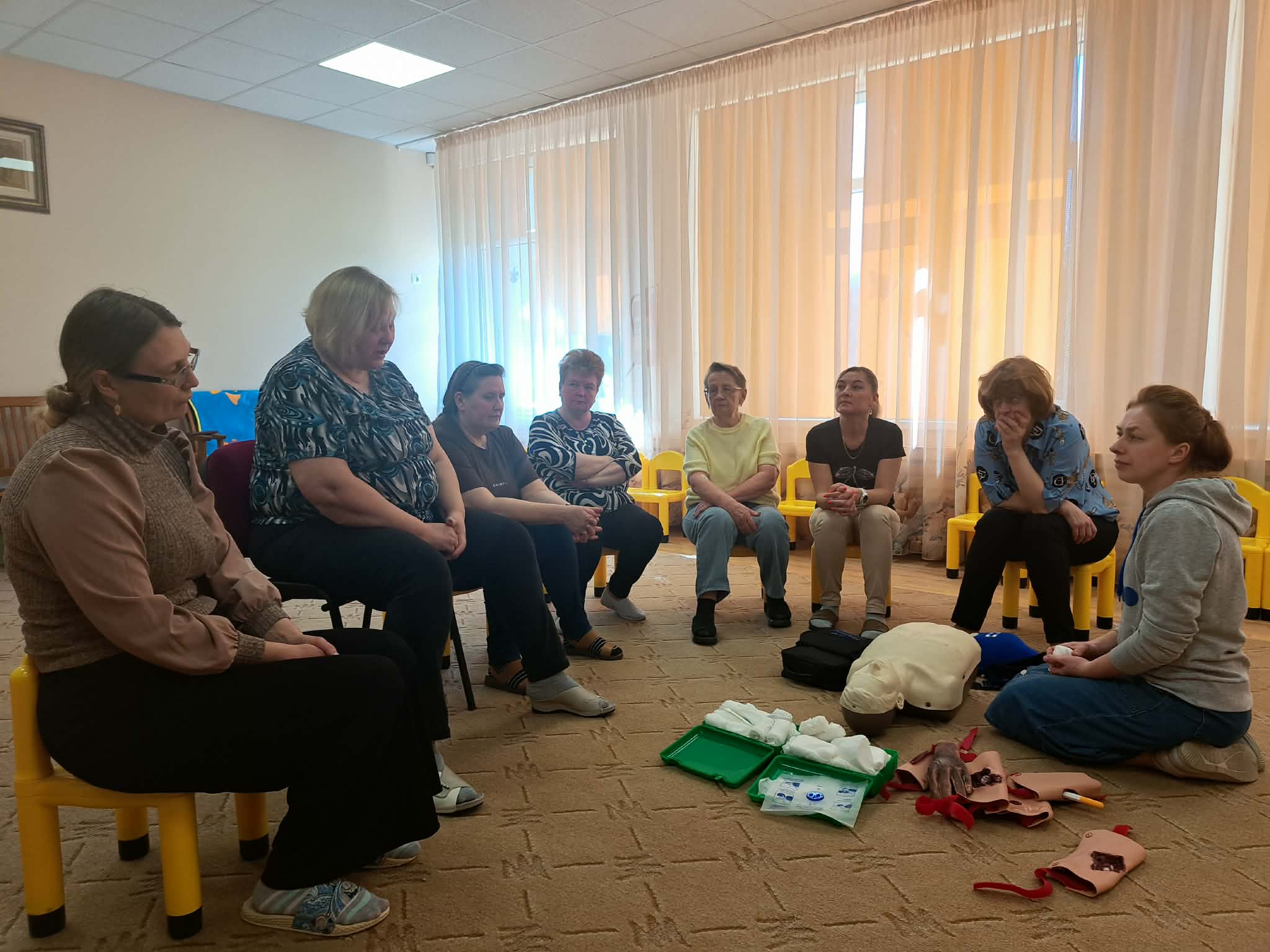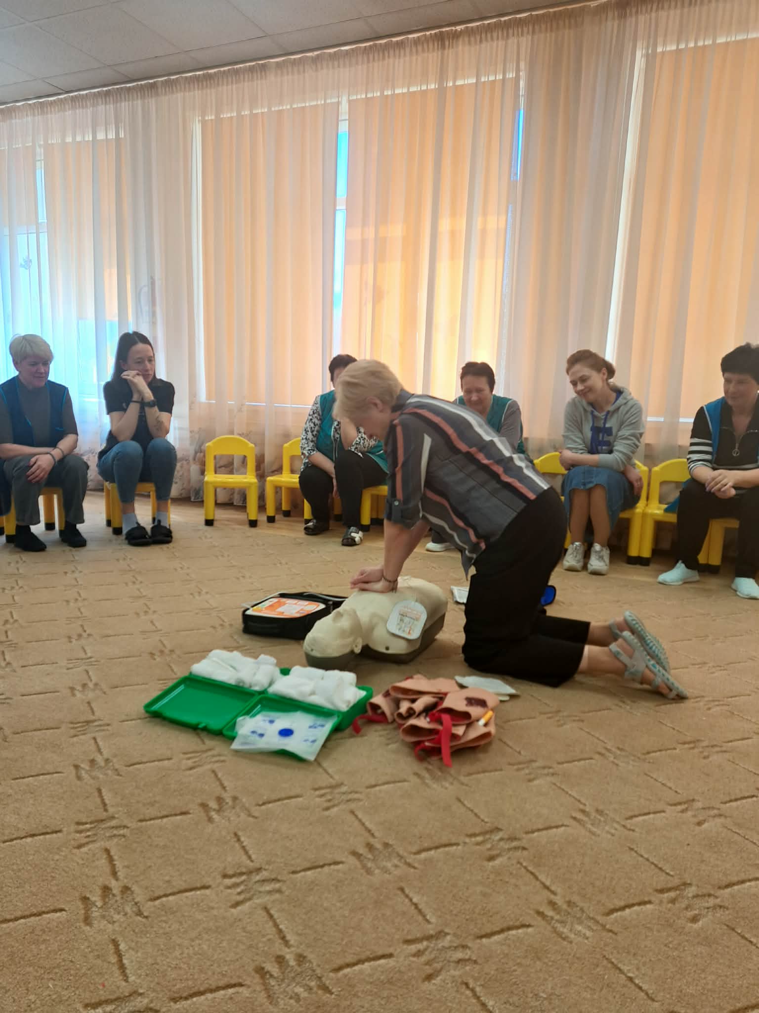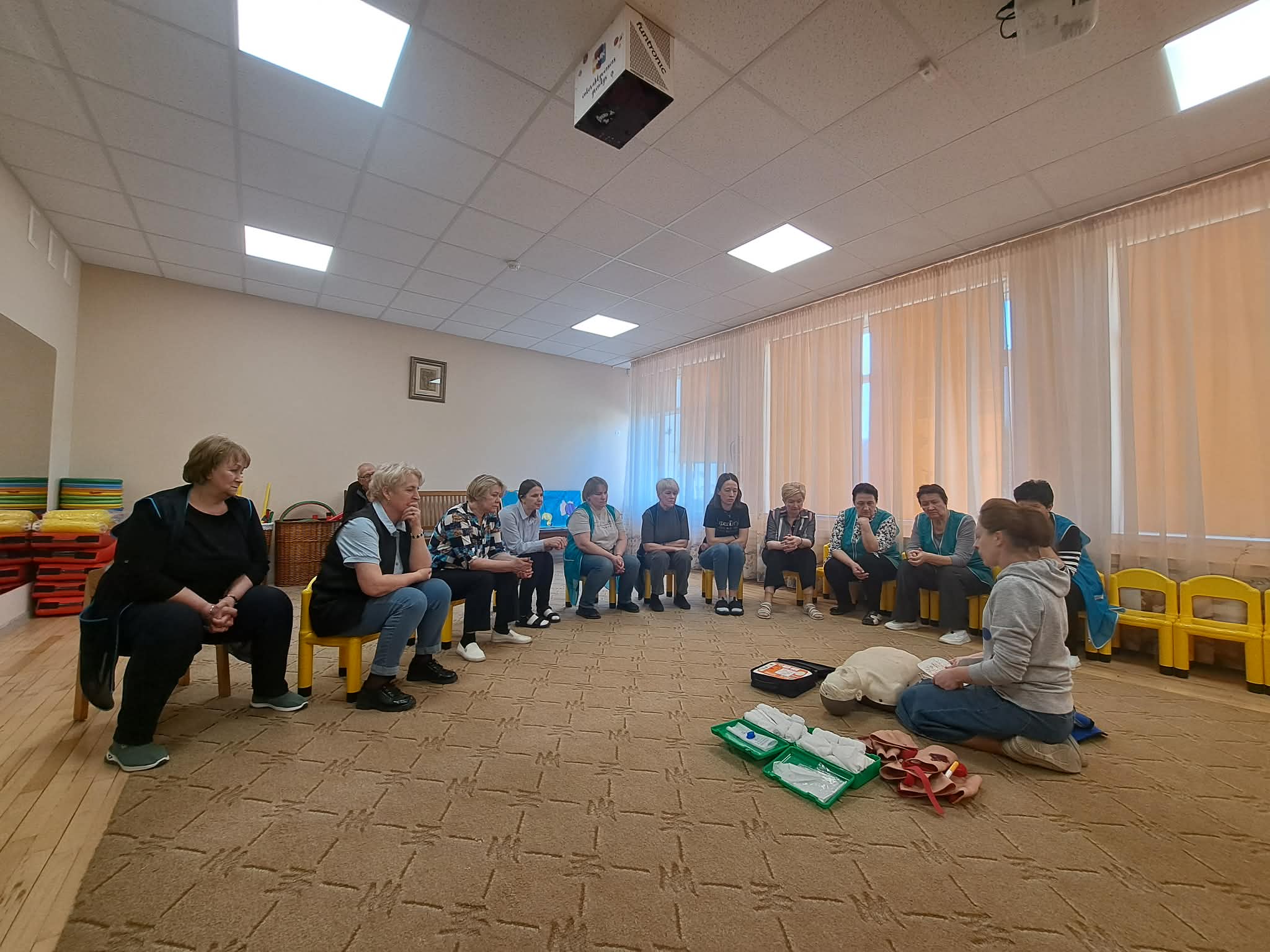 Šiandien darželio darbuotojai dalyvavo pirmosios pagalbos mokymuose, kuriuos vedė Šalčininkų r. savivaldybės visuomenės sveikatos biuro specialystė Elvyra.