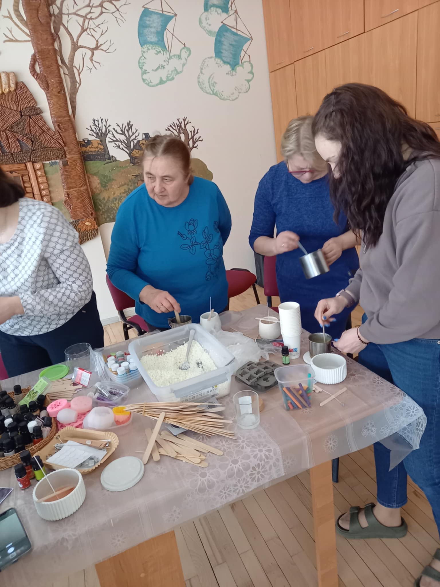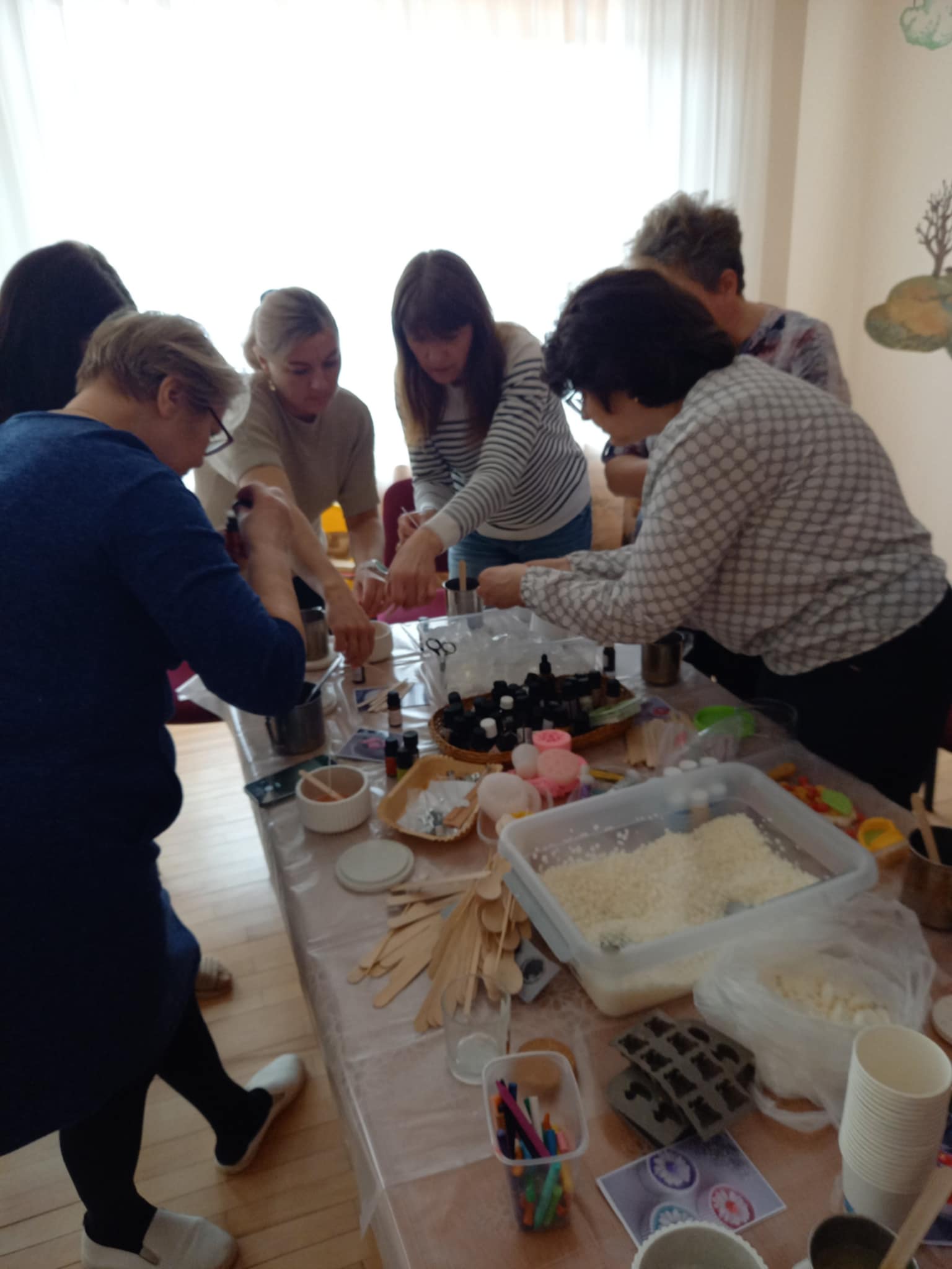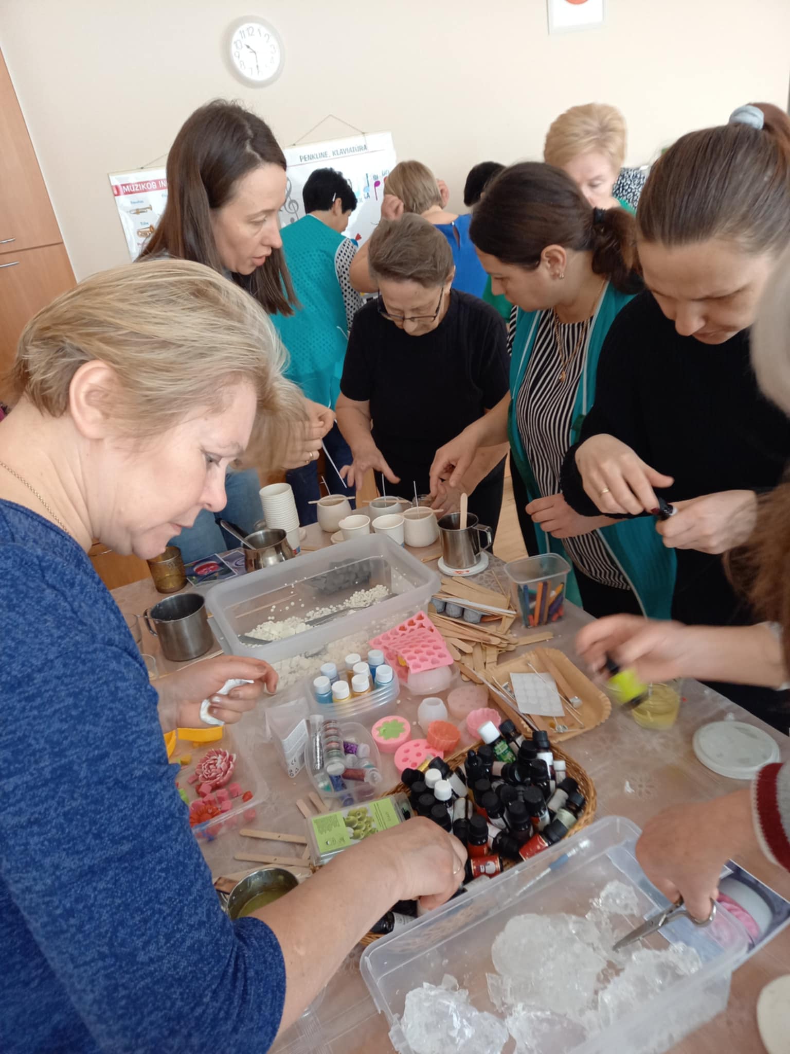 Kūrybinis procesas suteikė daug gerų emocijų, skatino bendravimą ir bendrystę. Užsiėmimas vyko labai jaukioje ir draugiškoje atmosferoje.